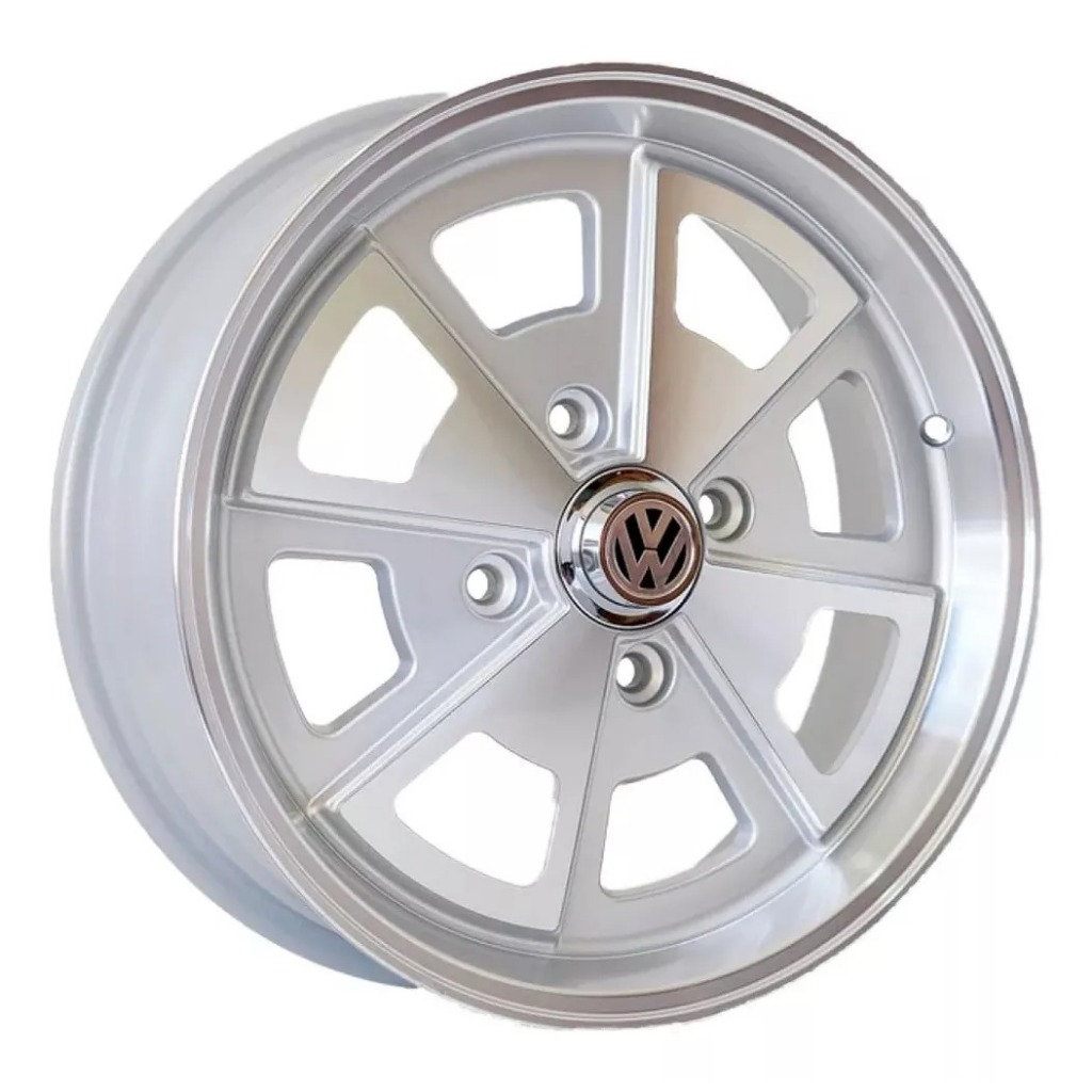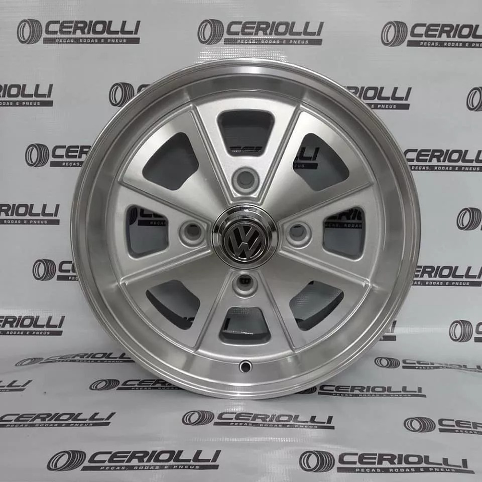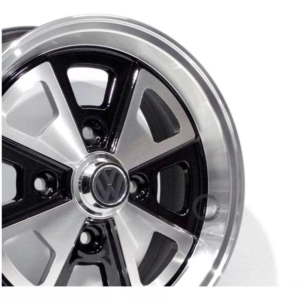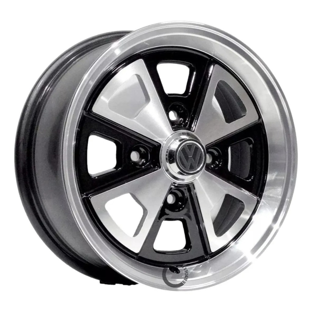 Kit 4 Rodas Aro 15 Fusca Vw Porsche 4x130 Grafite Preto Prata Diamantado Parafusos e Bicos de Brinde