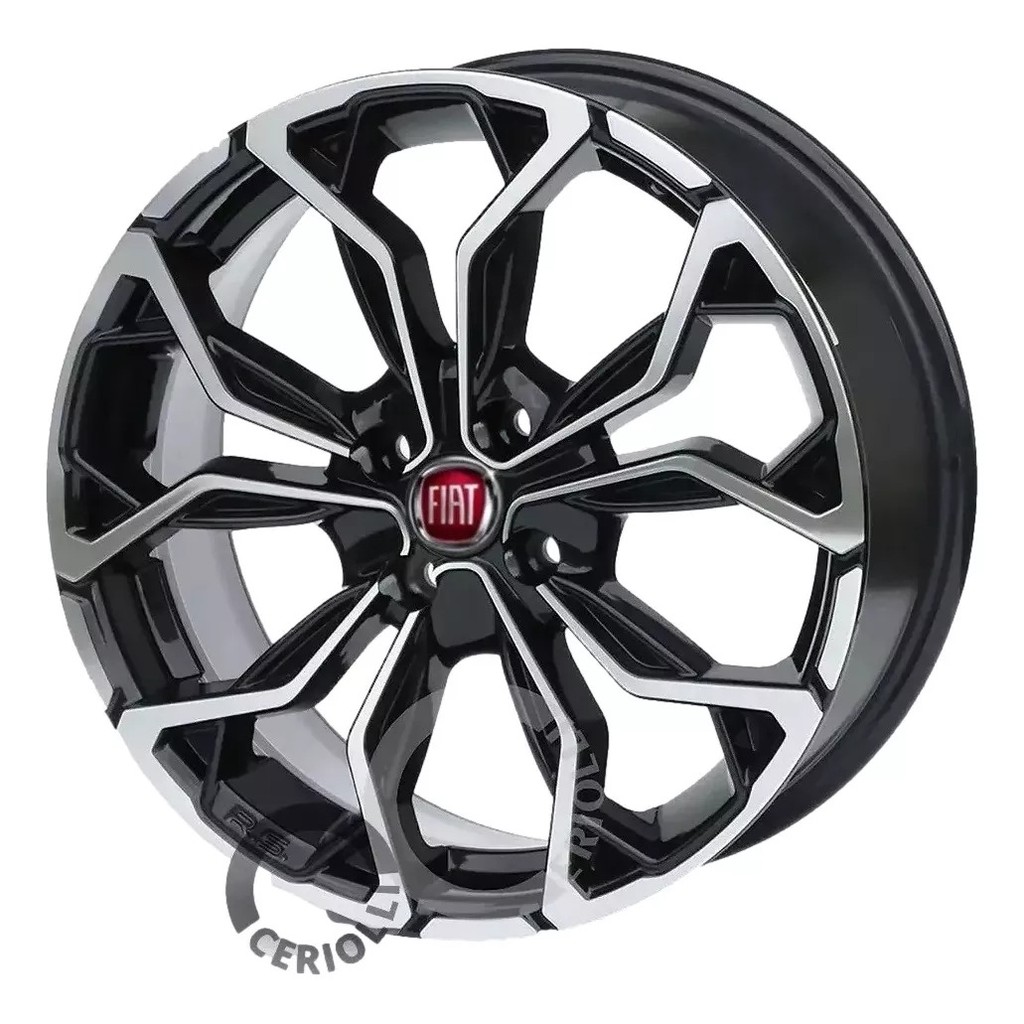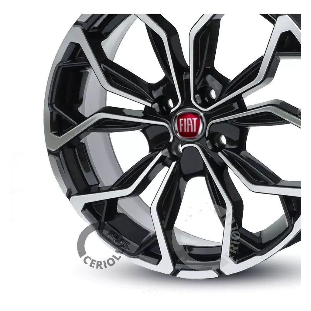 Kit 4 Rodas Aro 14 4x98 Emblema Vermelho Fiat Uno Fiorino Palio Bicos Brinde Preto Diamantado M16