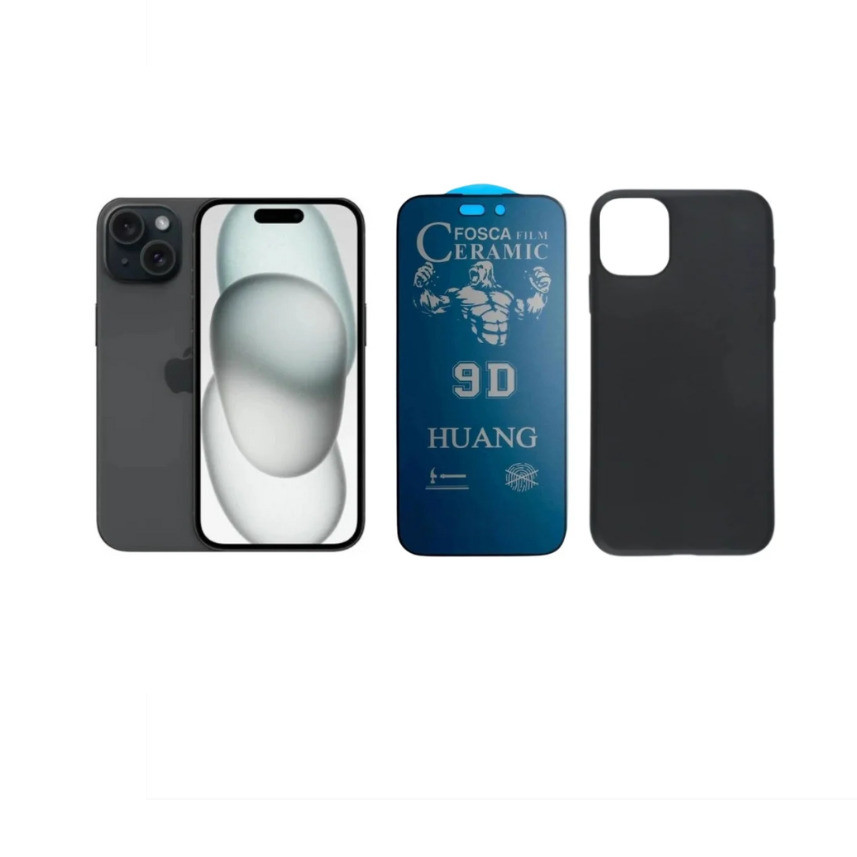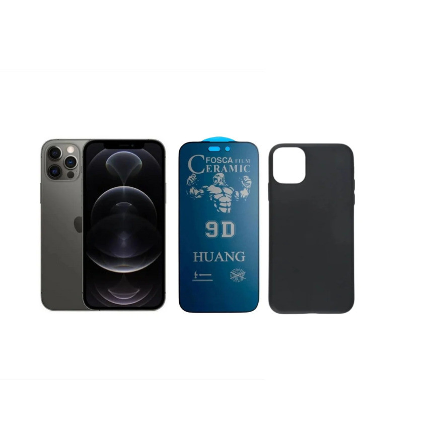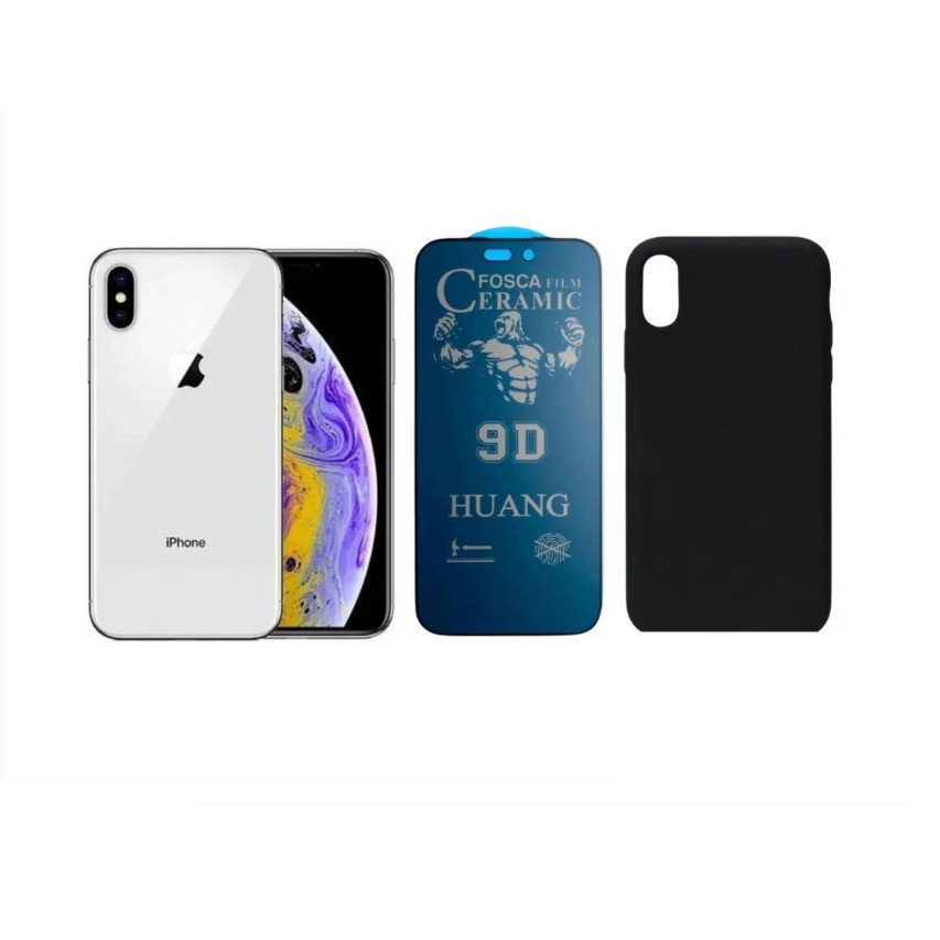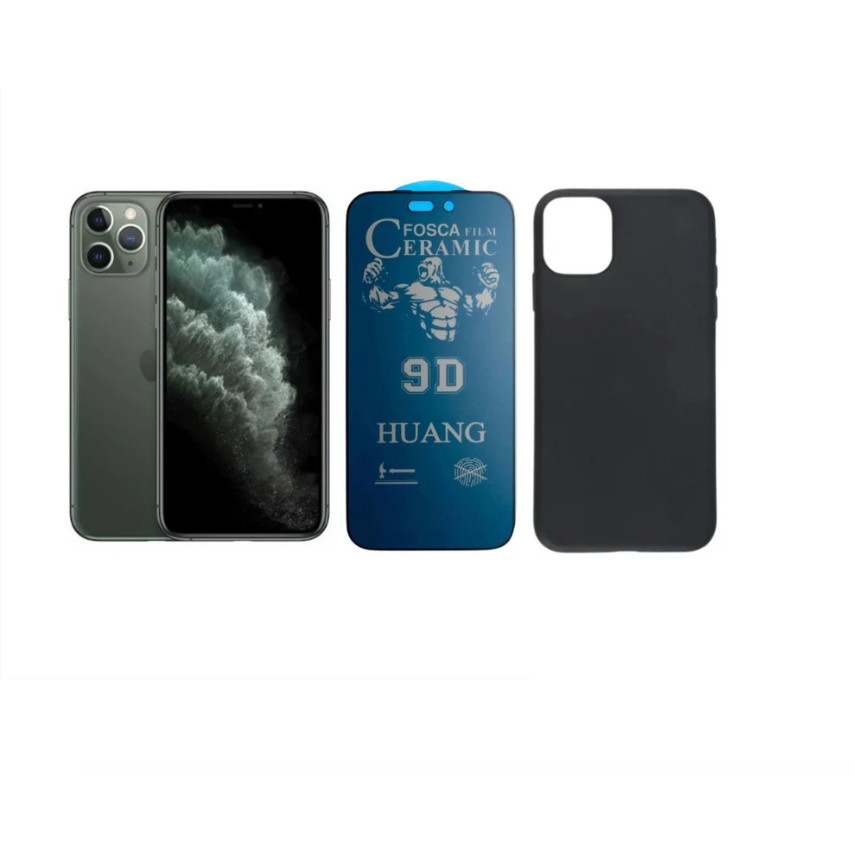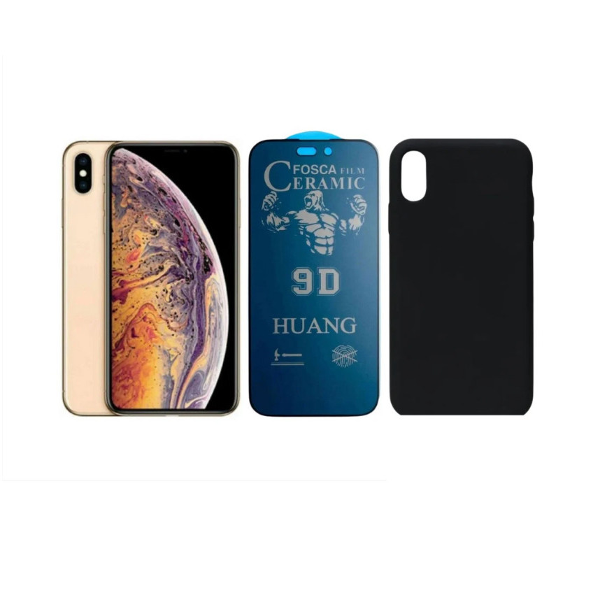 Kit 2 em 1 Case Preta + Película Cerâmica Fosca Privacidade Compatível iPhone XS 11 12 13 14 15 16