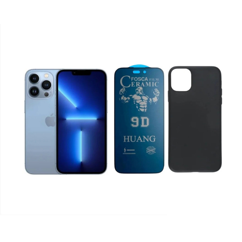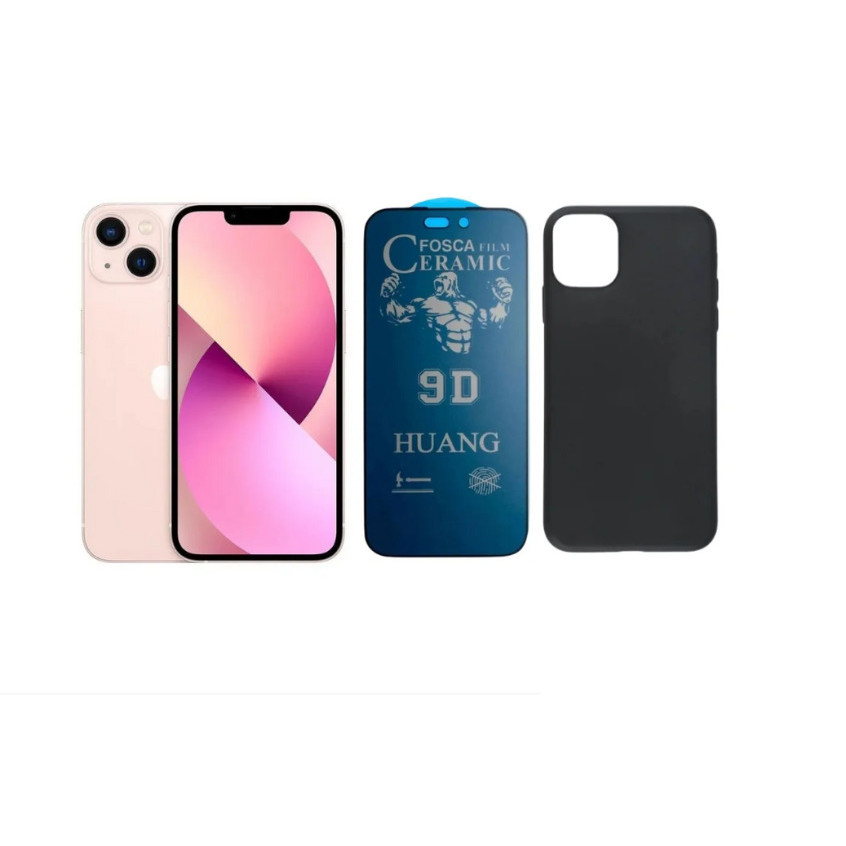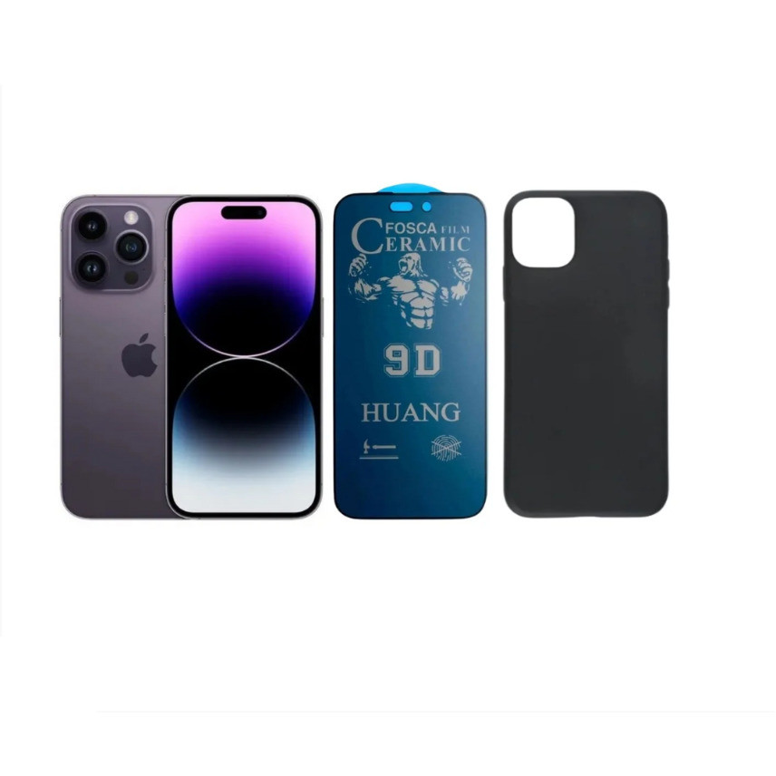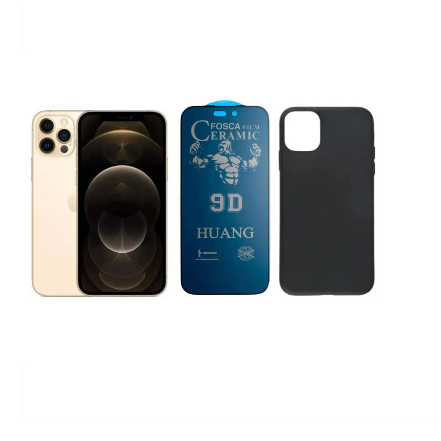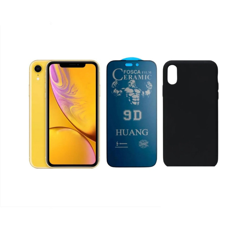Kit 2 em 1 Case Preta + Película Cerâmica Fosca Privacidade Compatível iPhone XS 11 12 13 14 15 16