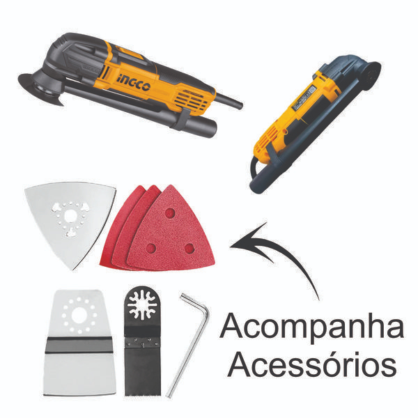 Multiferramenta Oscilante Elétrica Ingco 300W Com Acessórios Cortadora Lixadeira Multifunções