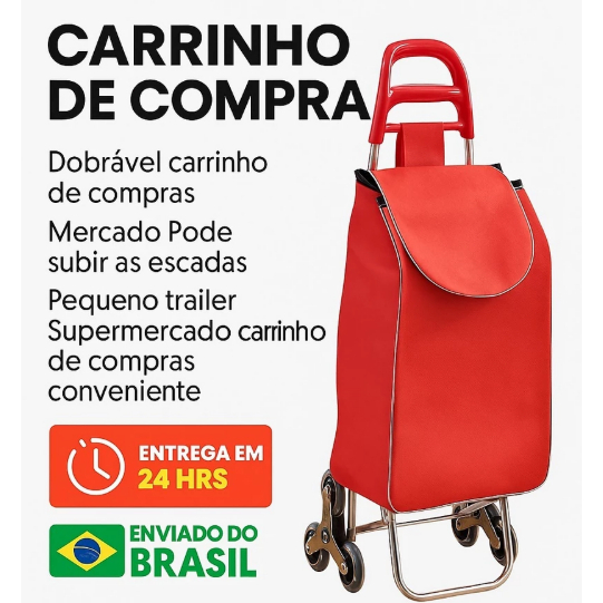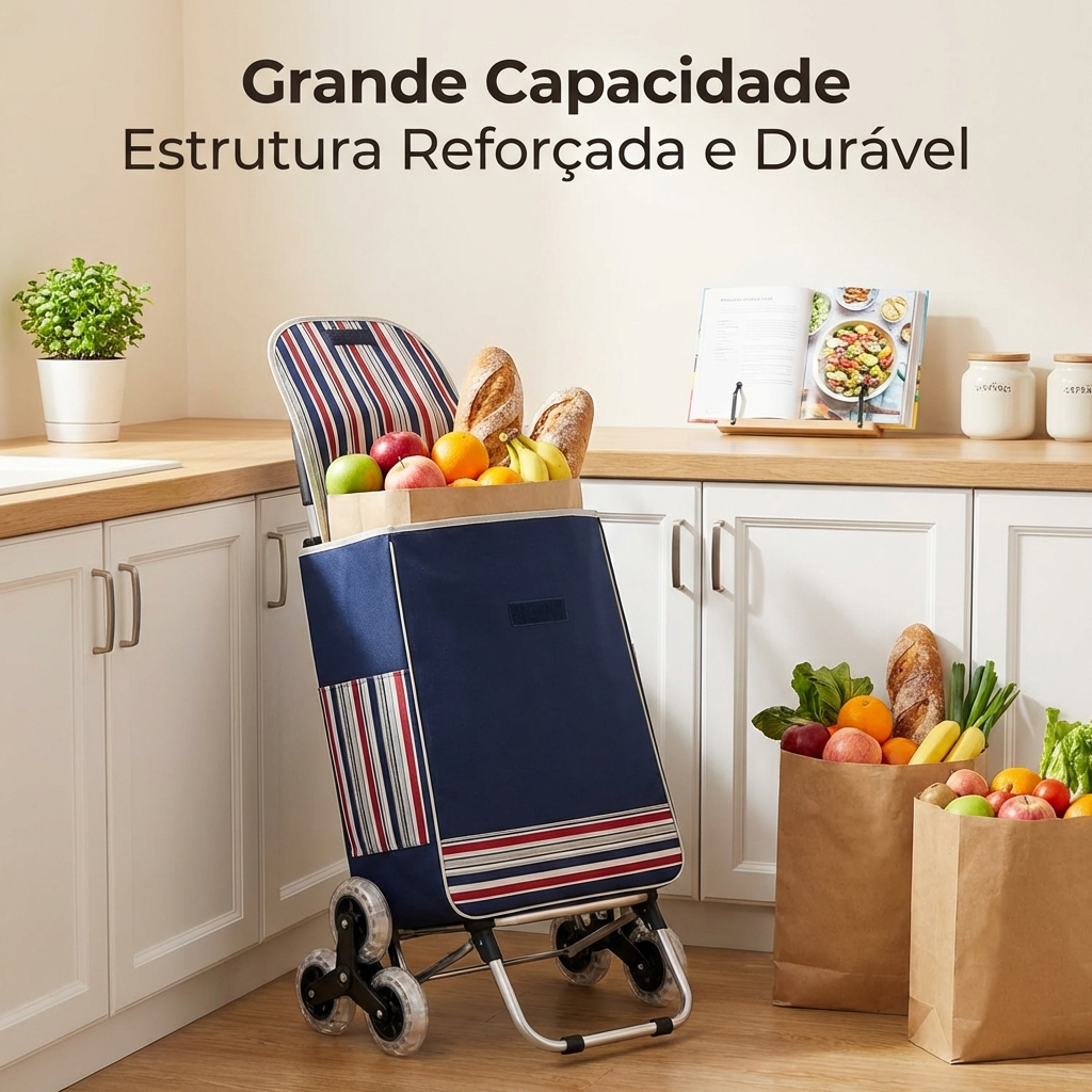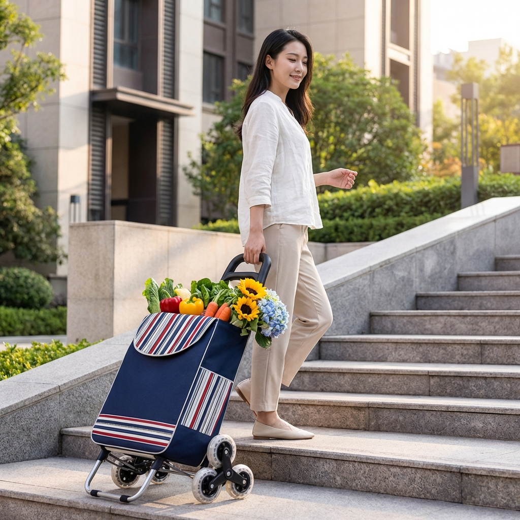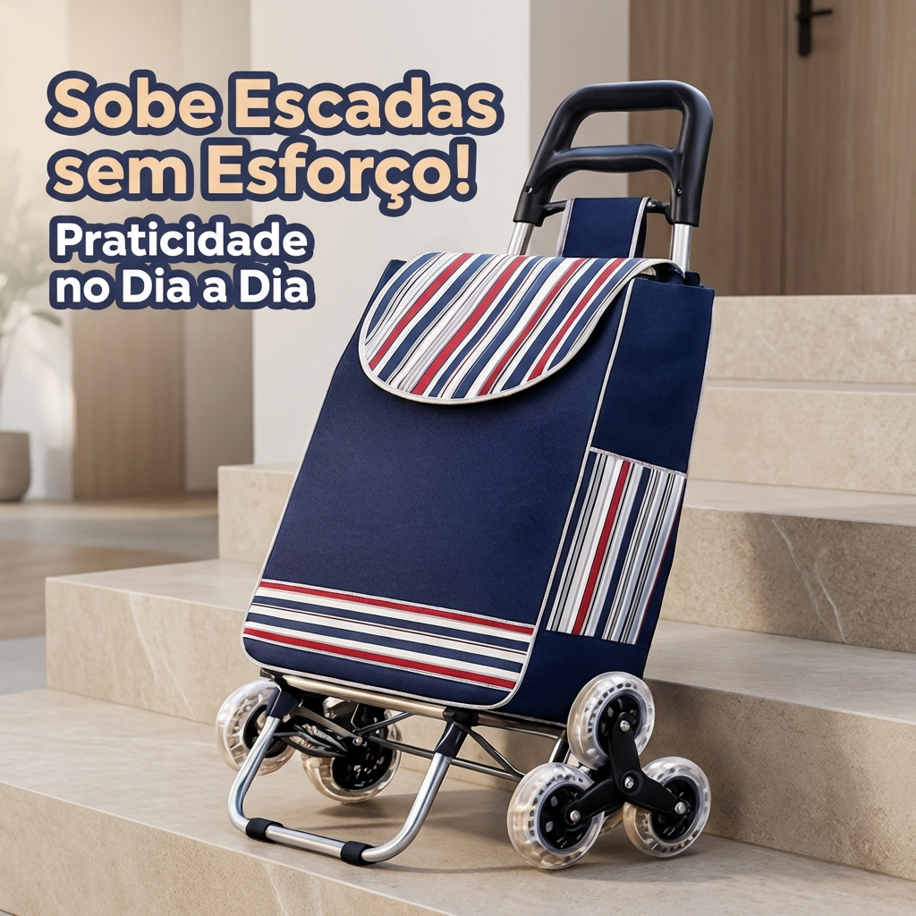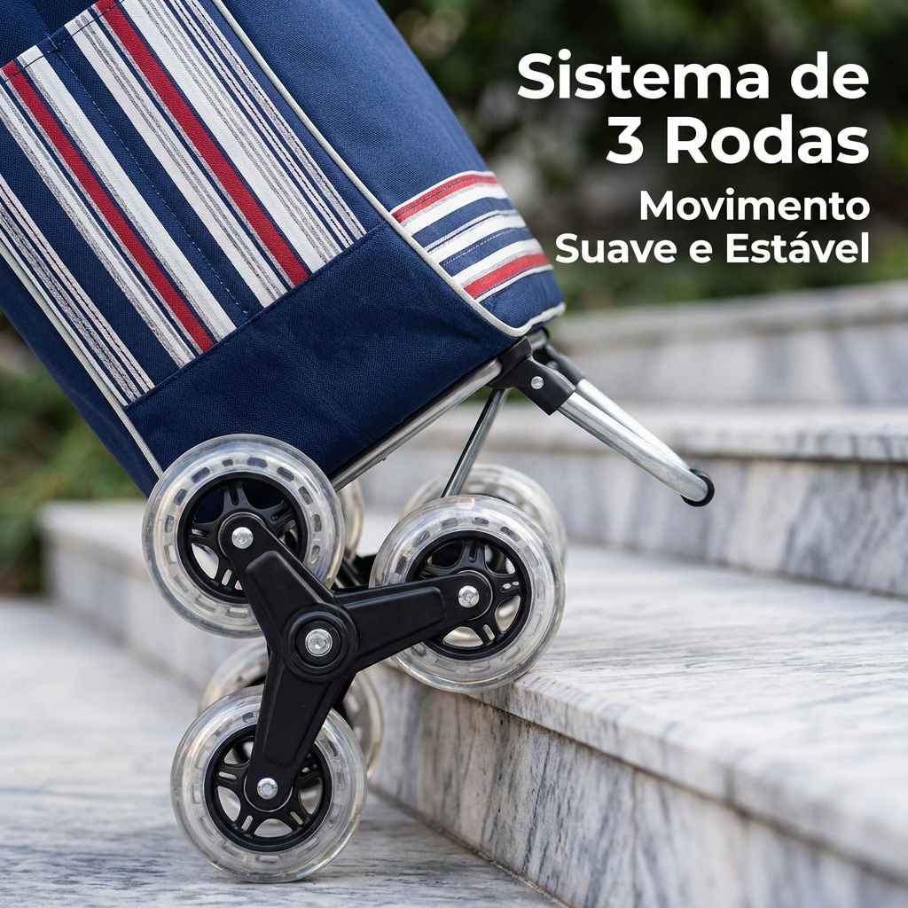 Carrinho de compras de três rodasCarrinho de compras portátil, fácil de usar para idosos subirem escadas, carrinho dobrá