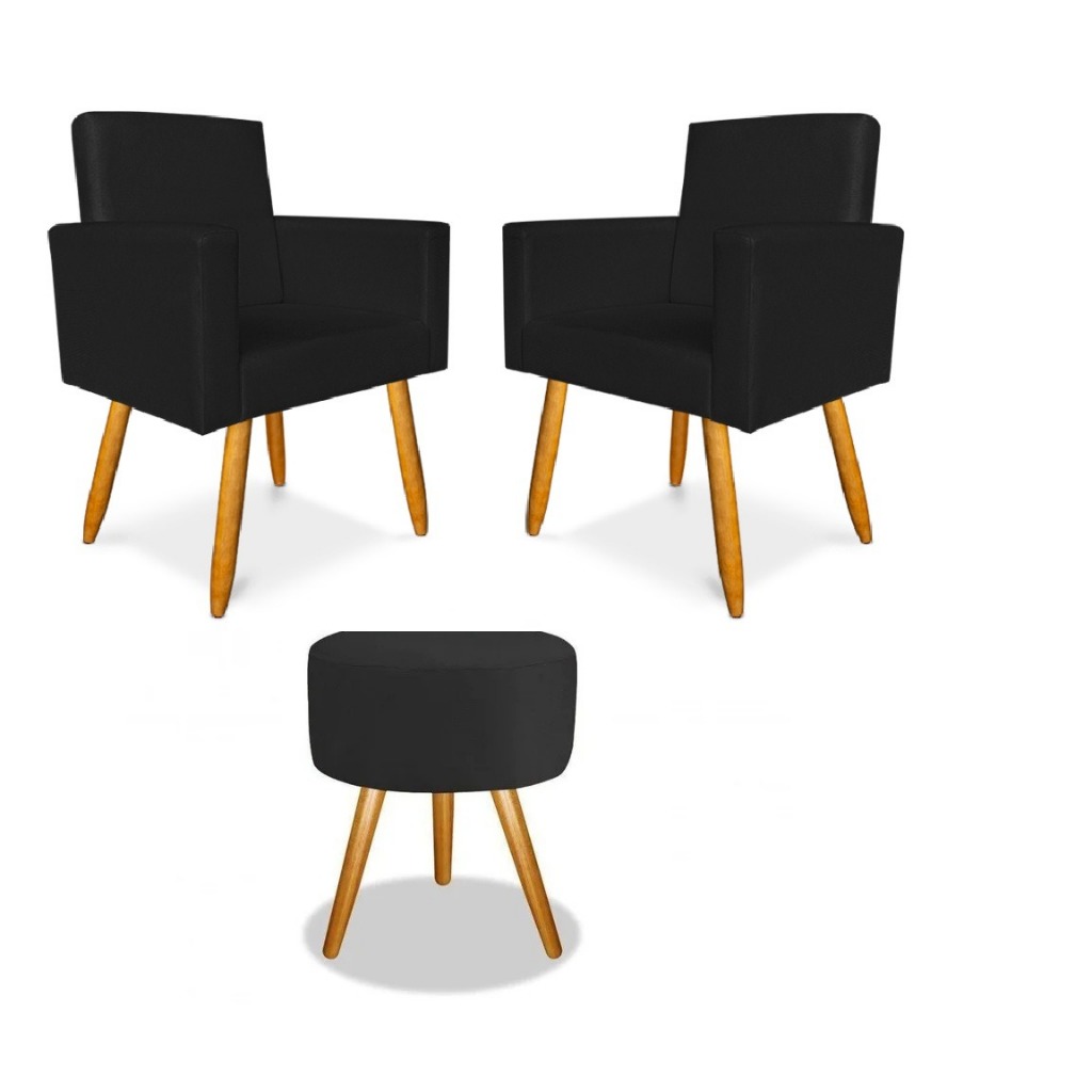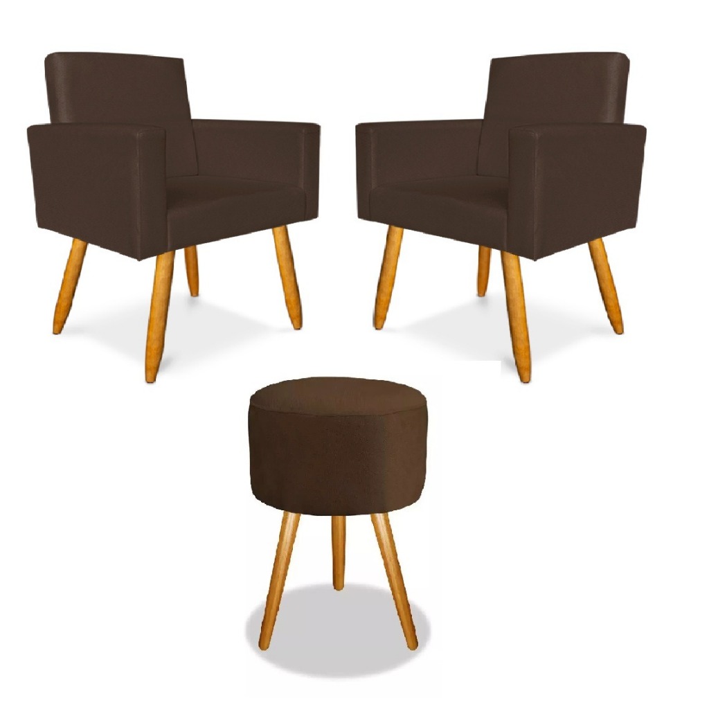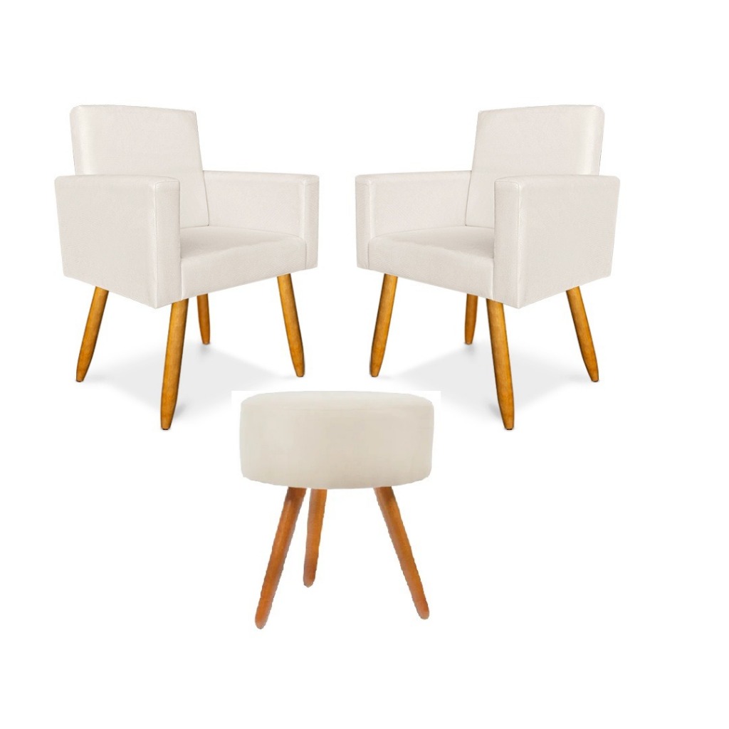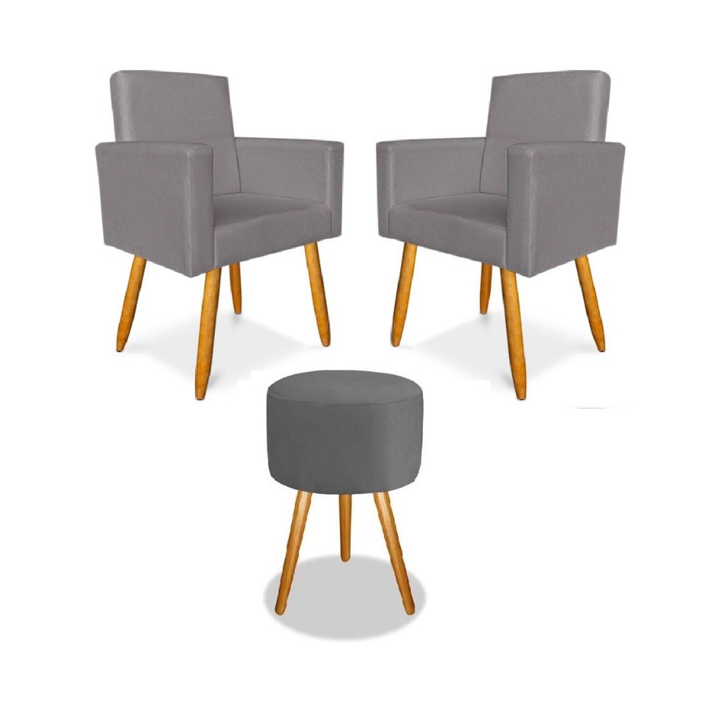 Conjunto Kit 2 Polronas Decorativas + 01 Puff Redondo Rosa