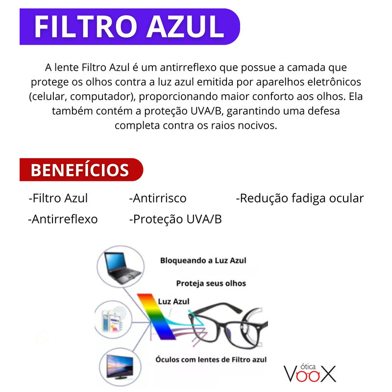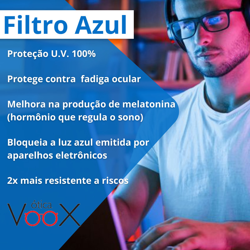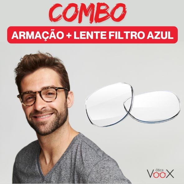 Combo: Armação Masculina + Lente Filtro Azul Anti Blue Miopia Astigmatismo