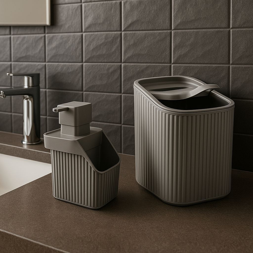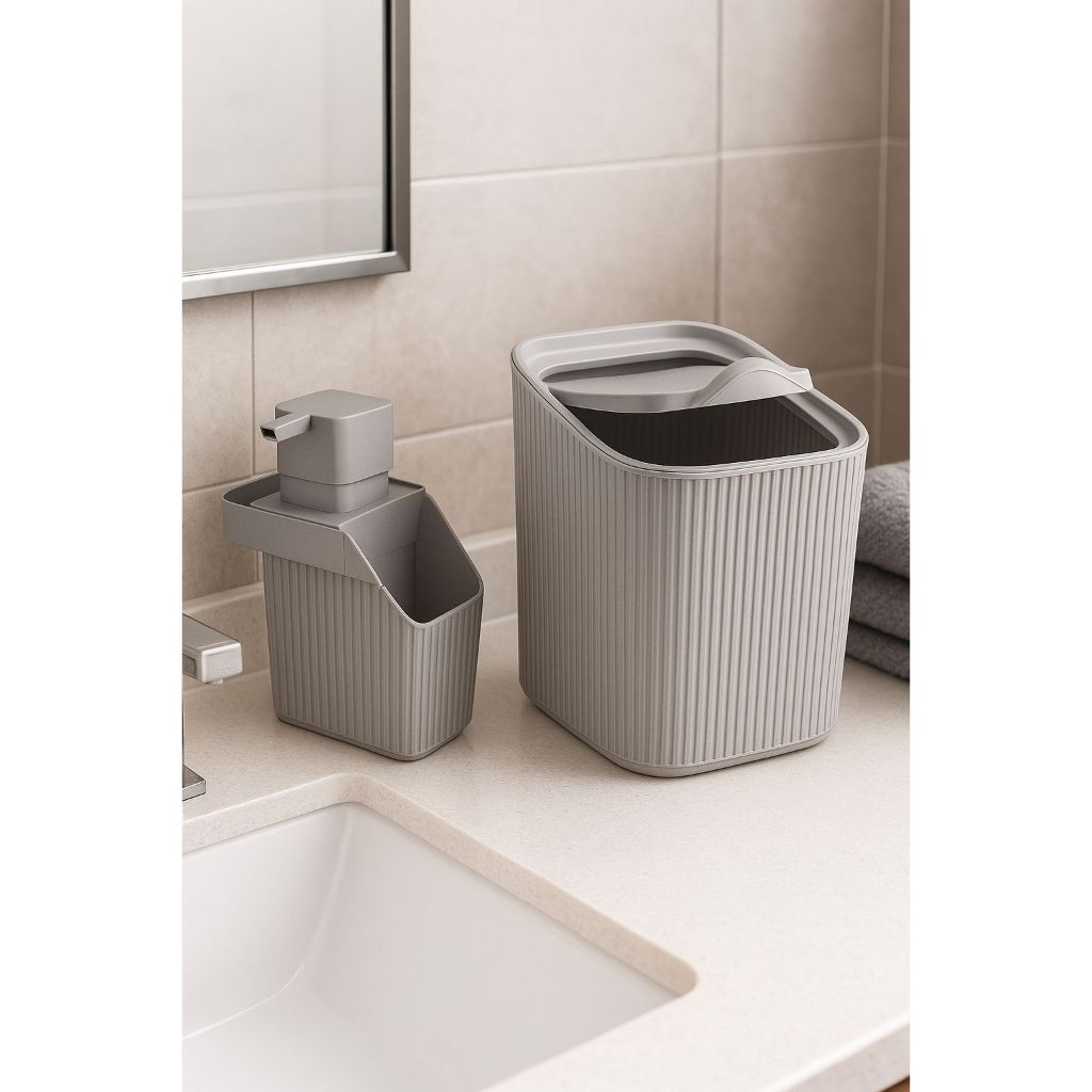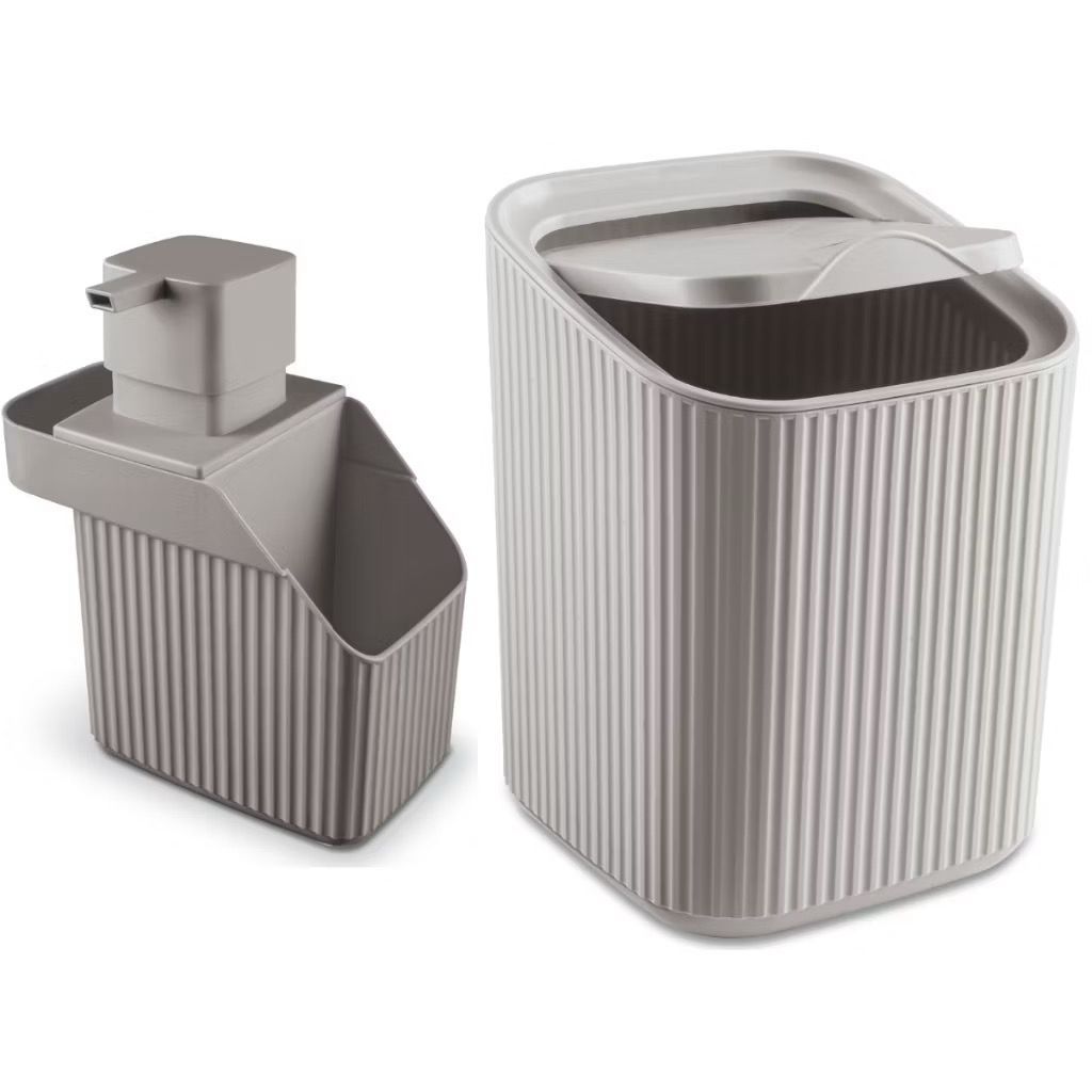 Kit Premium Organização De Pia Dispenser de Detergente + Lixeira 3 Litros Usual Utilidades