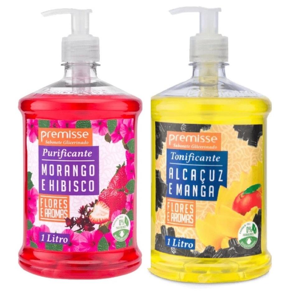 Sabonete Líquido Glicerinado Pump 1L Premisse - 01 à 02 unids | Mãos, Rosto e Corpo | Profissional e Residencial