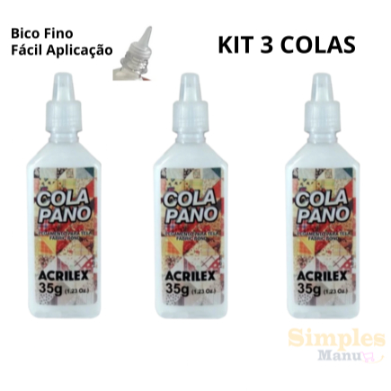 Kit 3 Cola Pano 35G Acrilex Cola Para Tecido Costura Falsa Barra de Calça - Envio Imediato
