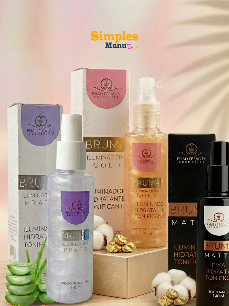 Bruma Fixadora Phallebeauty Matte, Gold e Prata | Fixador de Maquiagem Profissional Glow Hidratante