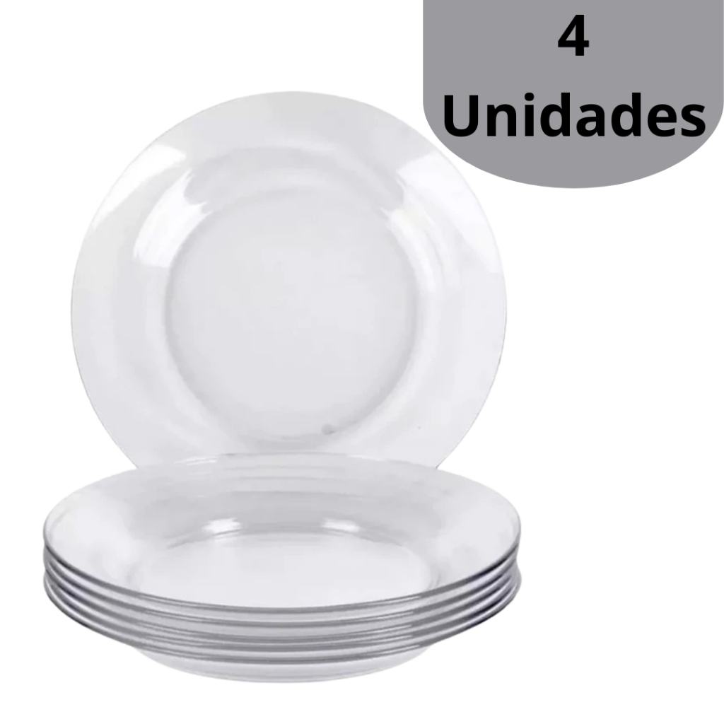 Jogo De Prato Fundo De Vidro Resistente Kit 12 Prato Almoço Jantar Mesa Restaurantes Bar