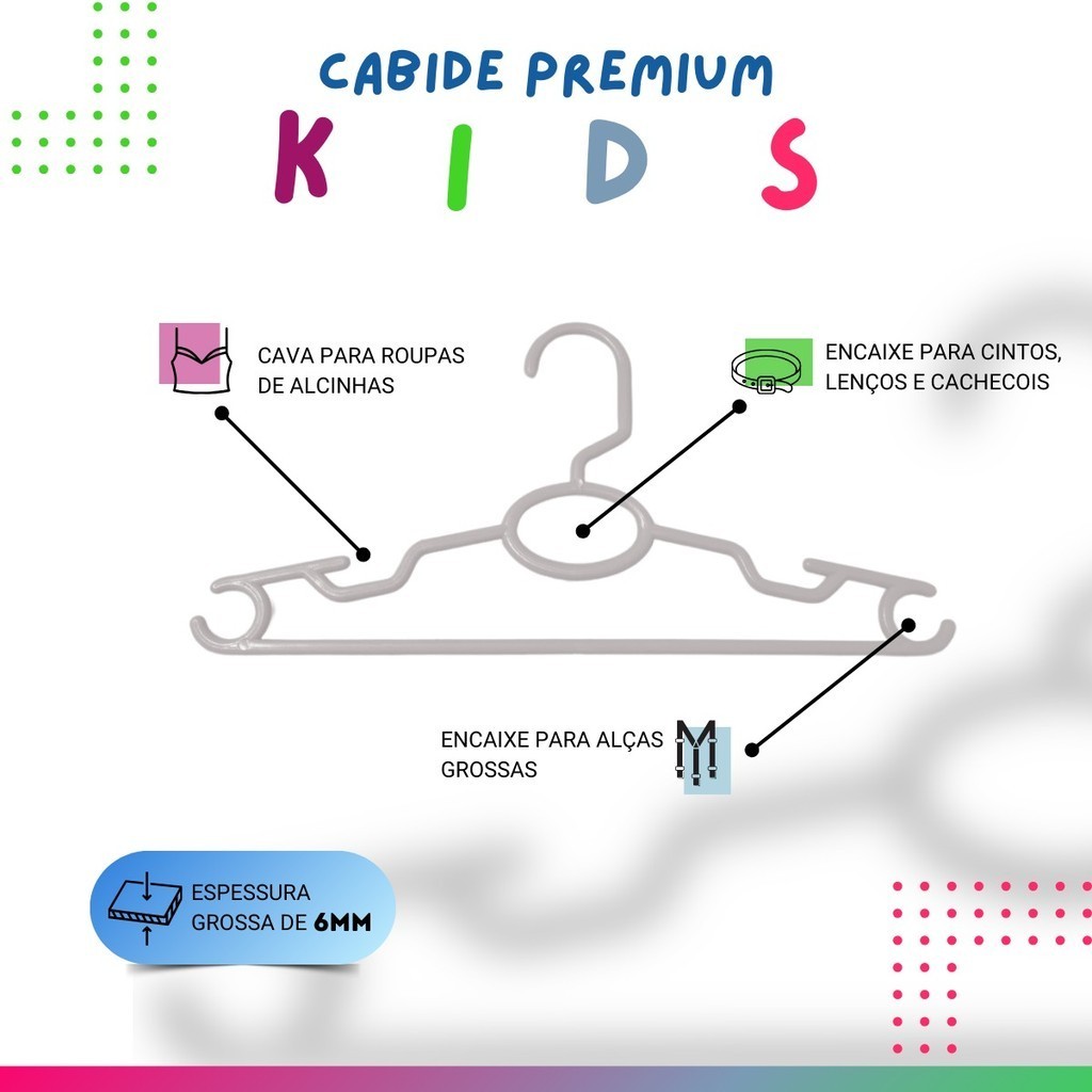 Kit 100 Cabides Infantil Bebê Baby Reforçado Branco Plástico Cruzeta Roupa Resistente Premium