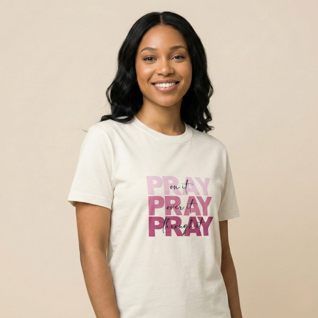 Camiseta Blusa Feminina Tshirt 100% Algodão Estampa Pray Pray Pray