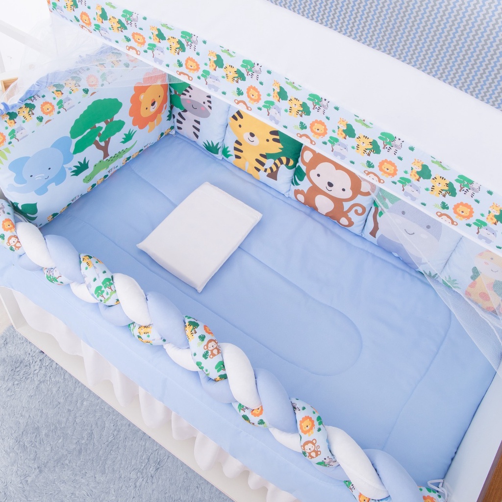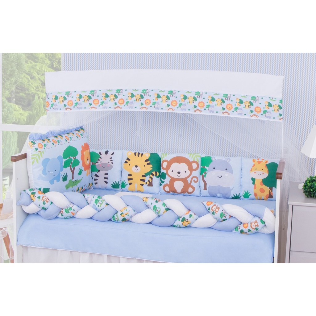 Kit Berço Americano 13 pcs para Bebê Menino Safari Azul