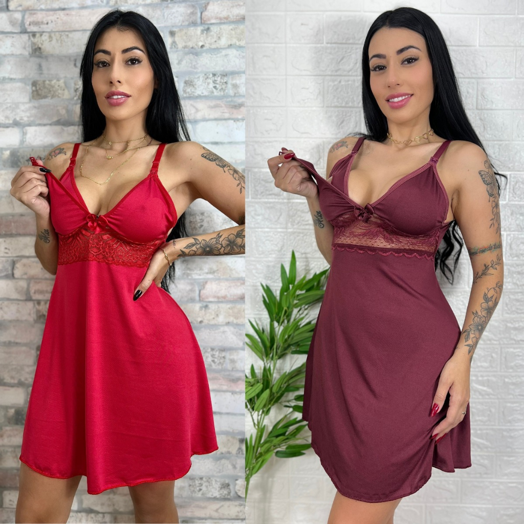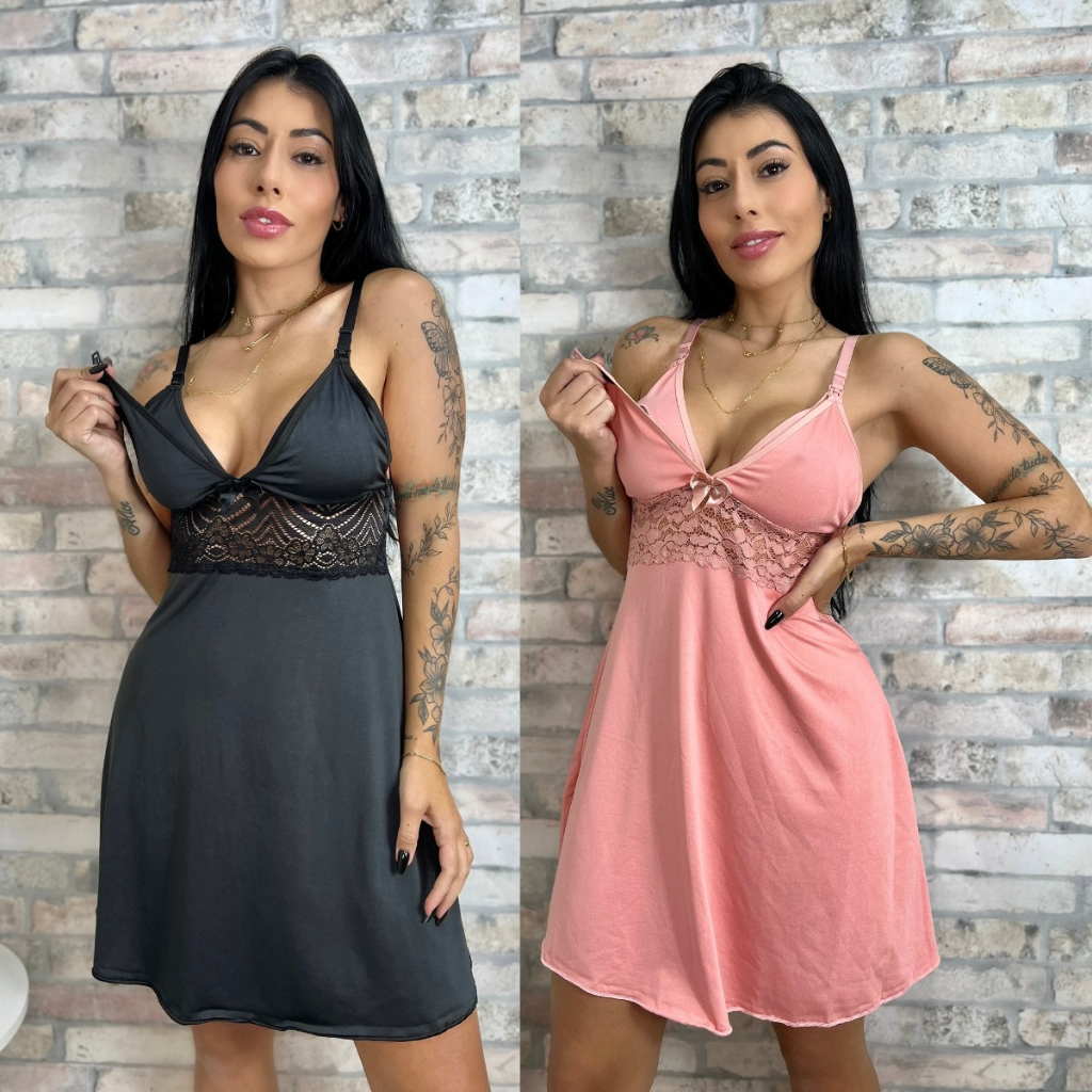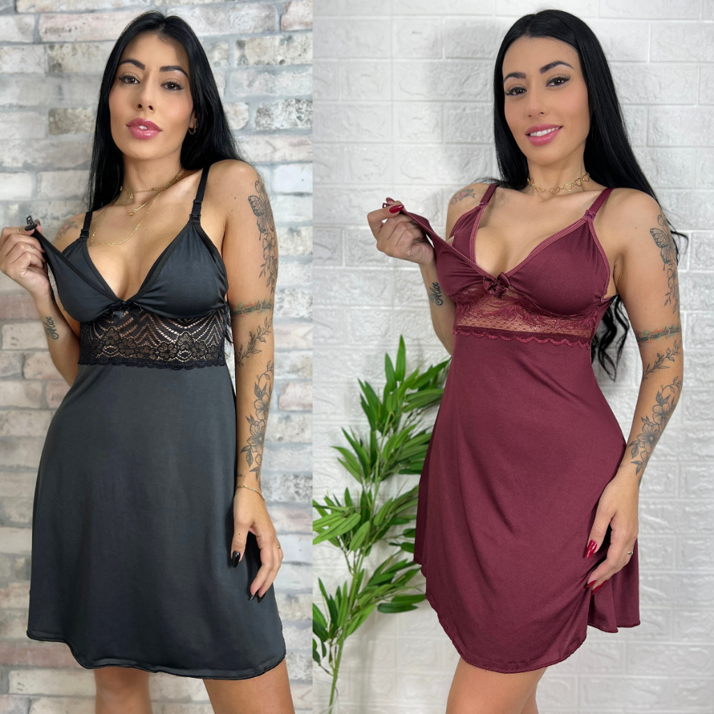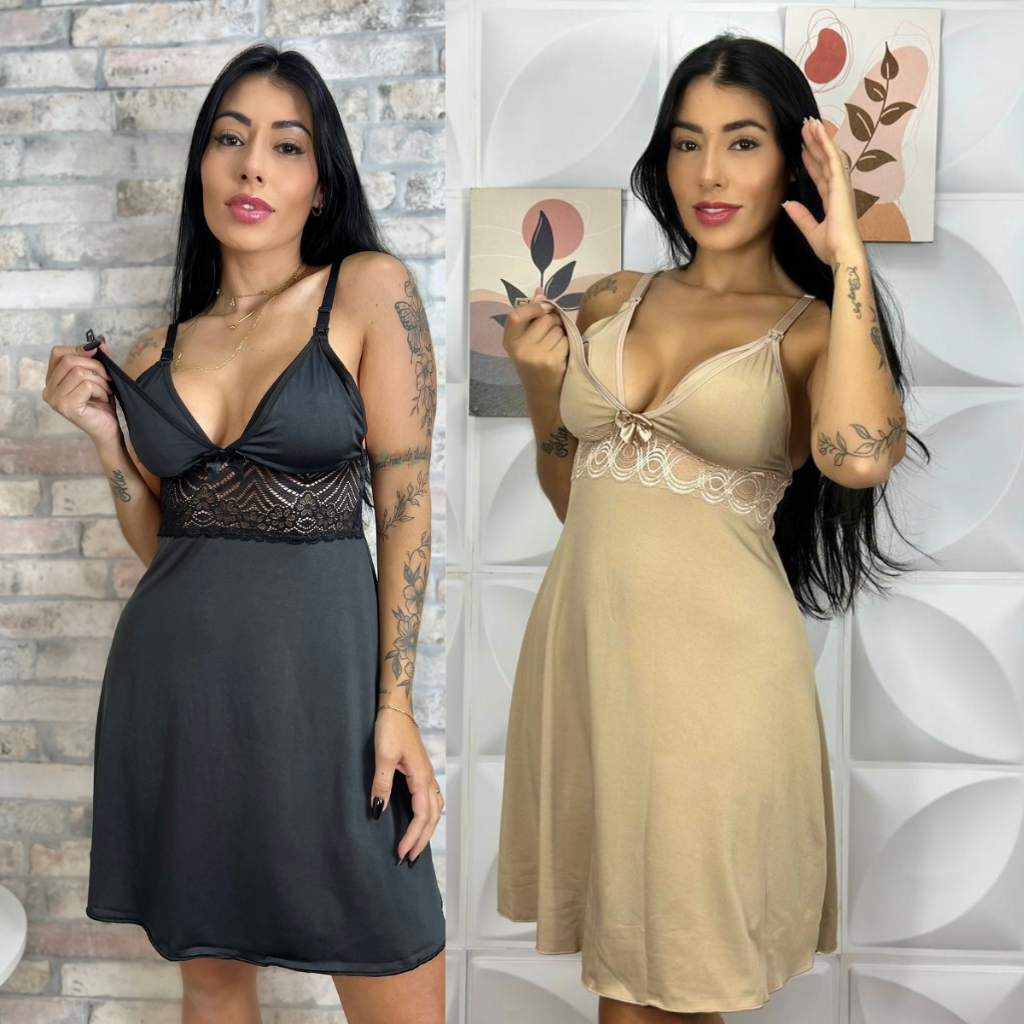 KIT 02 Camisolas Amamentação com Detalhe em Renda Saída Maternidade Grávida Gestante Lactante.