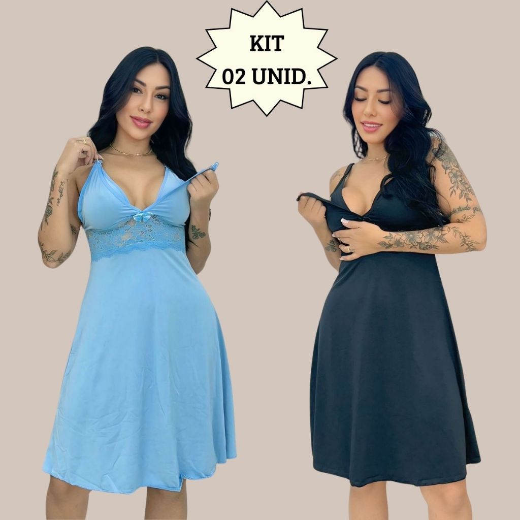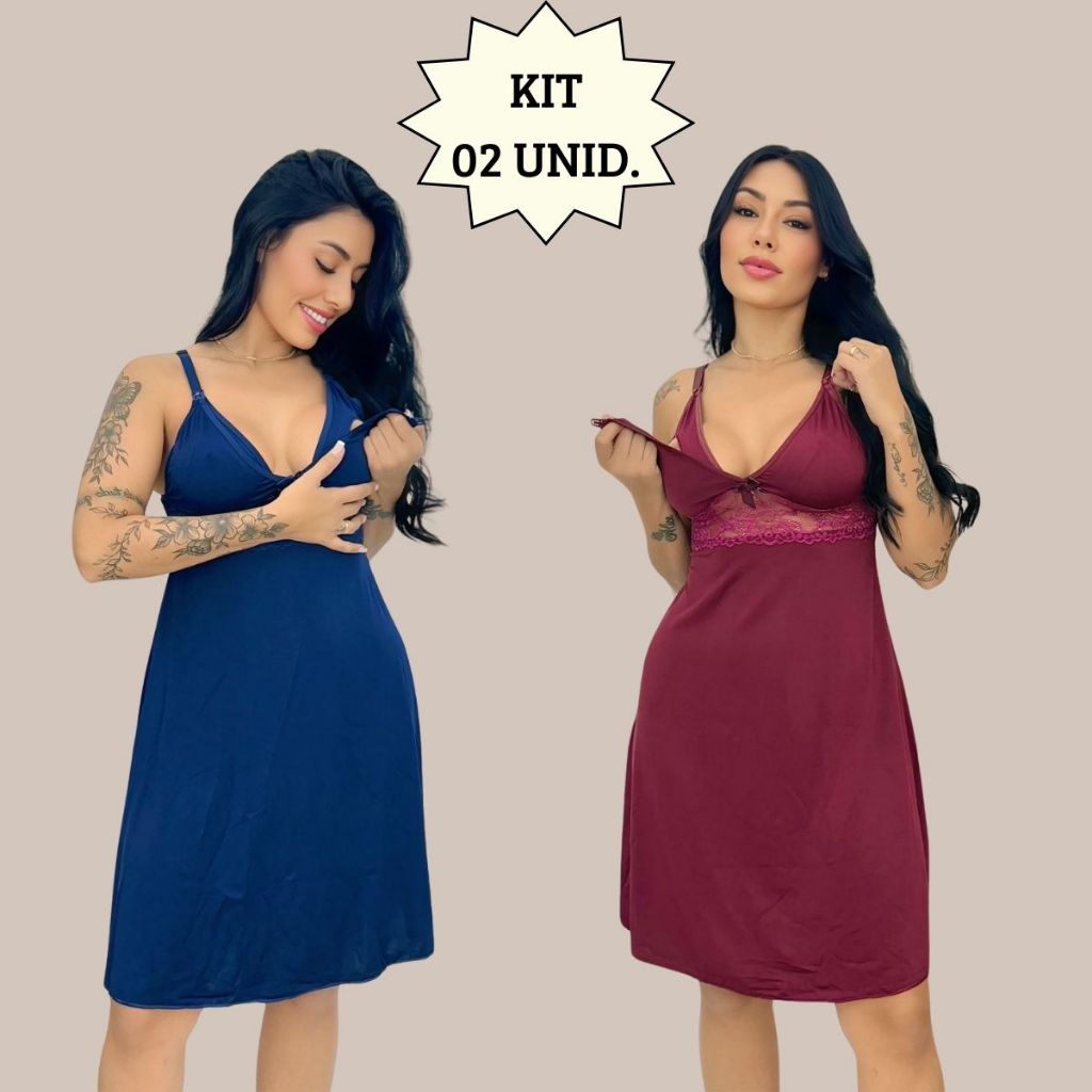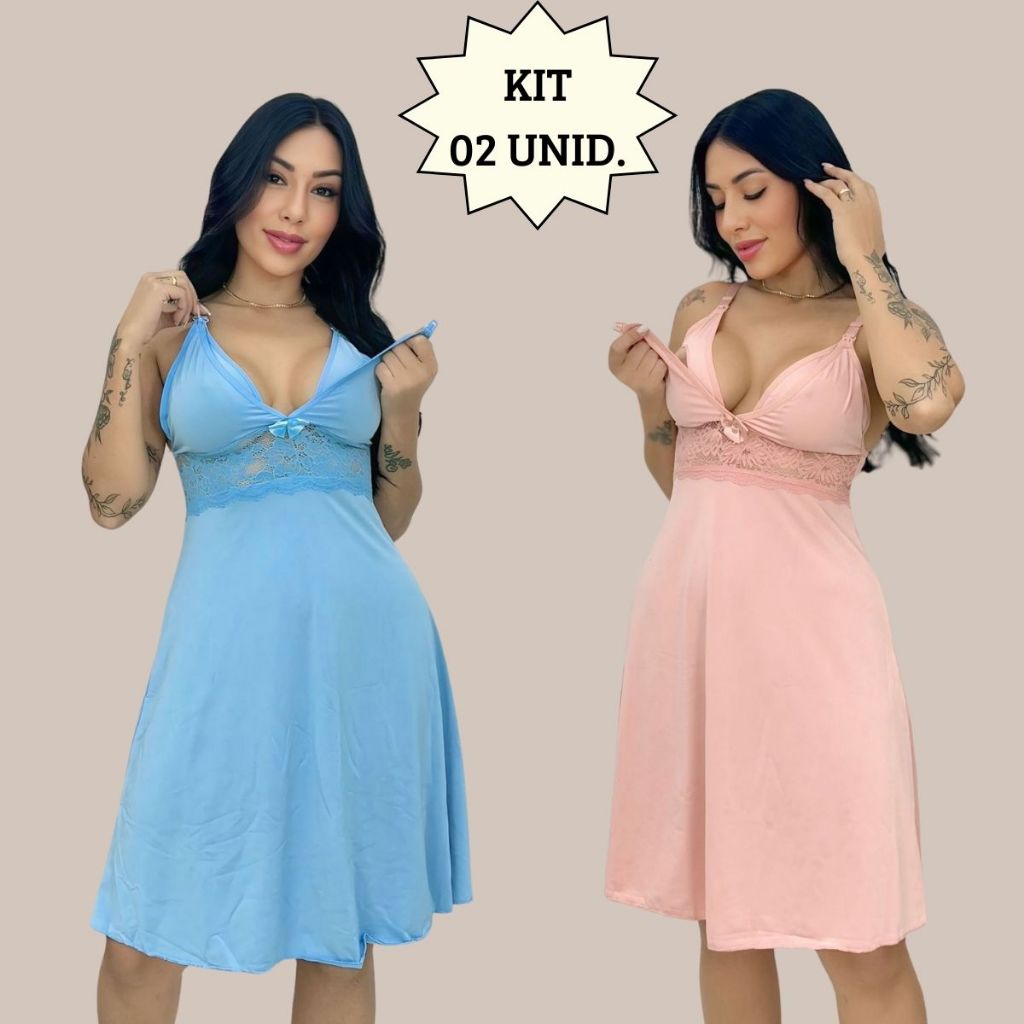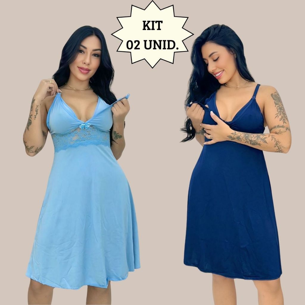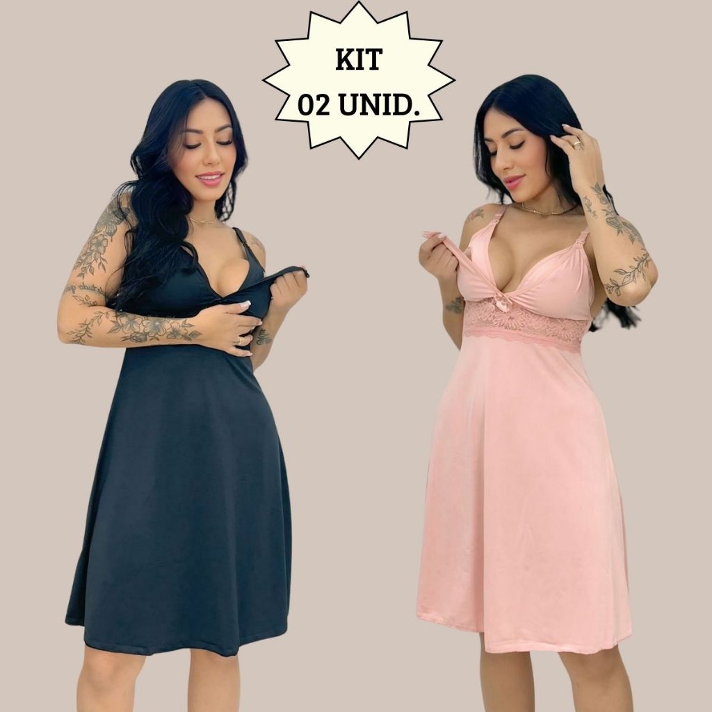 KIT 02 Camisolas Amamentação Sem Bojo com Detalhe em Renda Saída Maternidade Grávida Gestante.