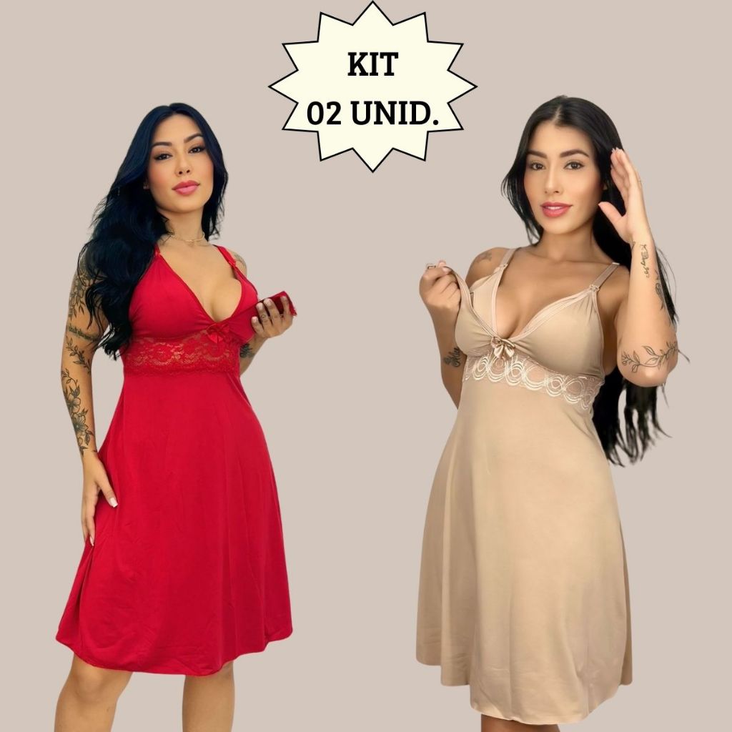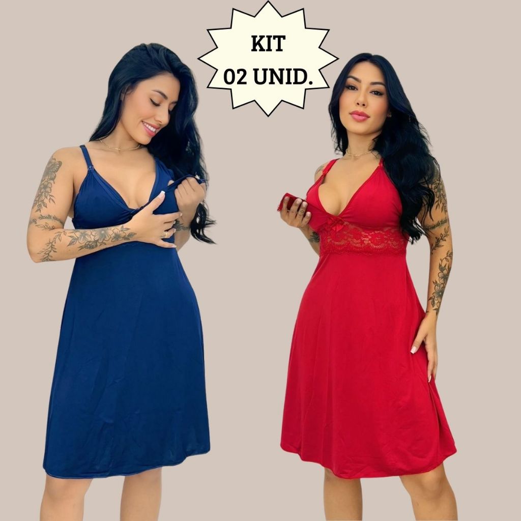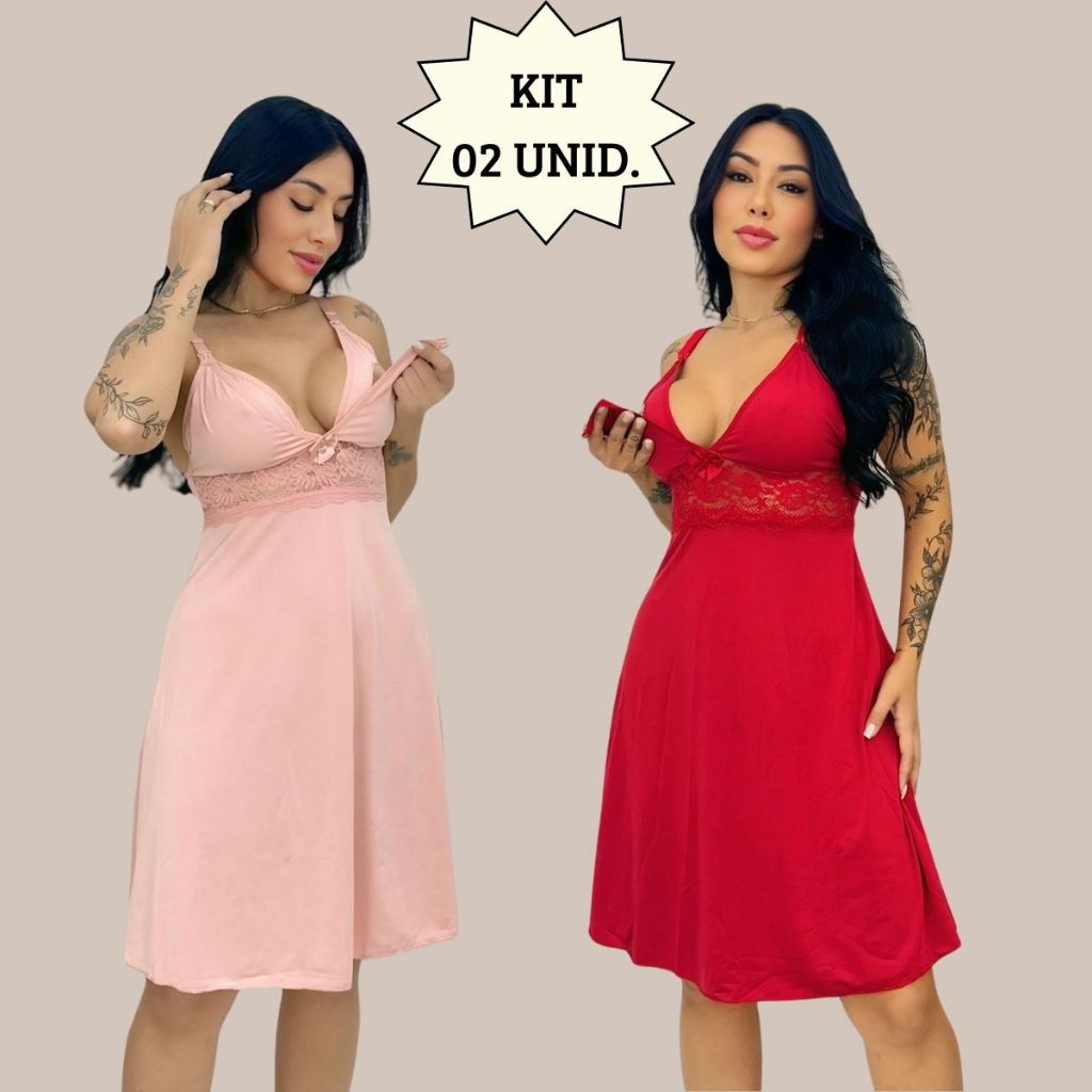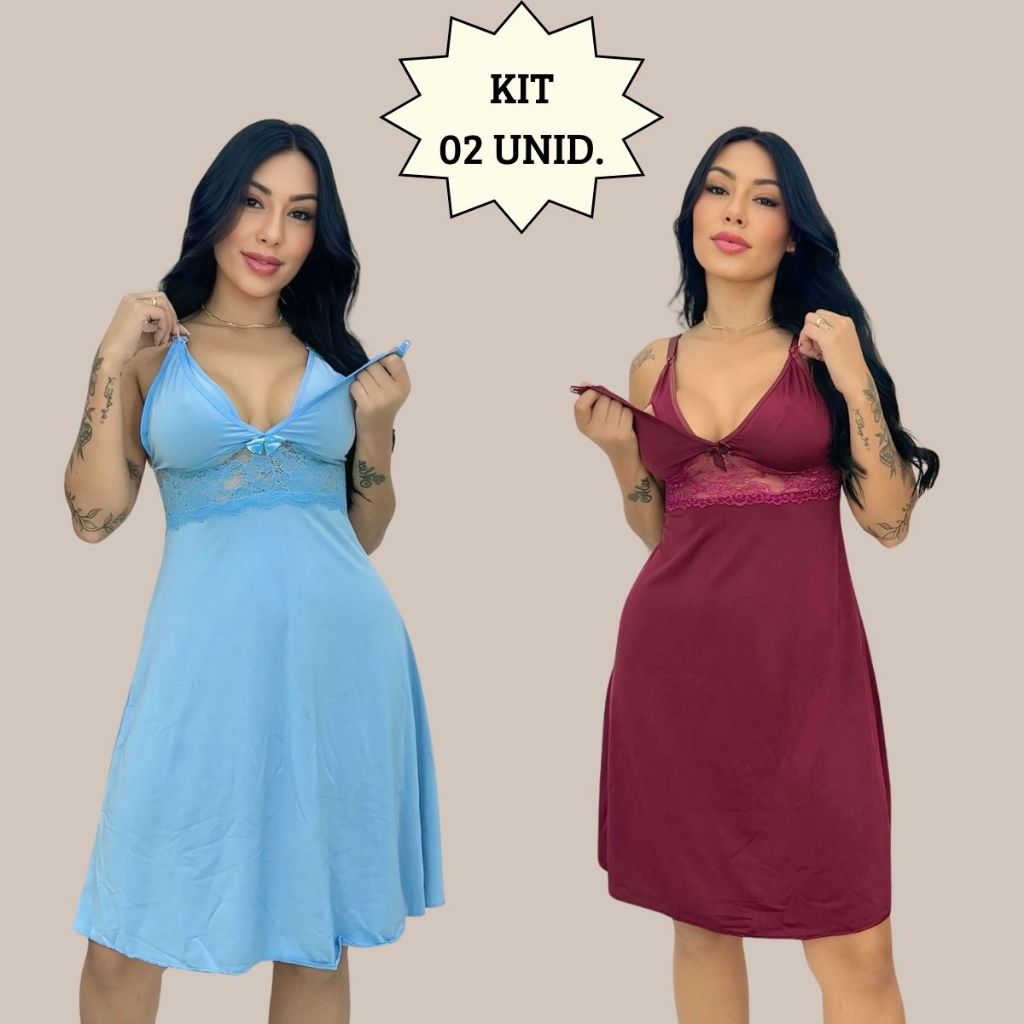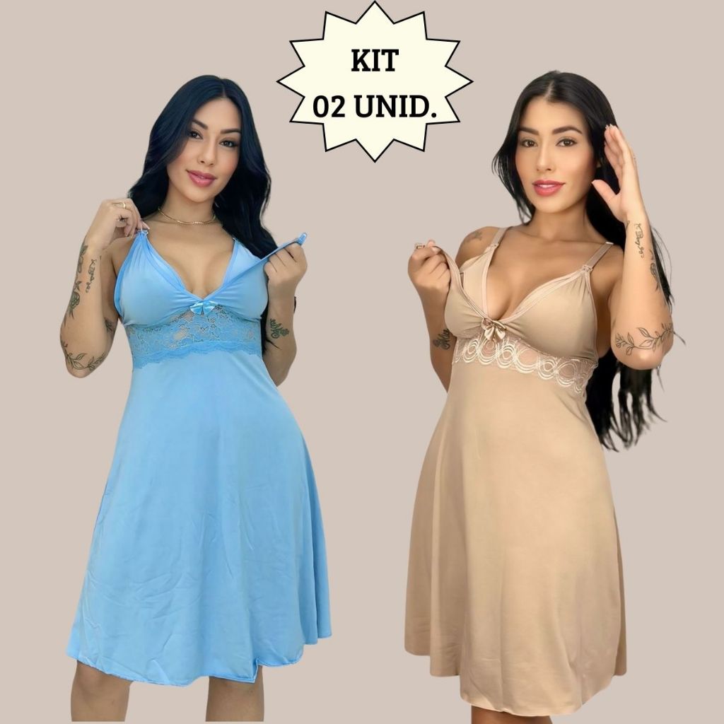 KIT 02 Camisolas Amamentação Sem Bojo com Detalhe em Renda Saída Maternidade Grávida Gestante.