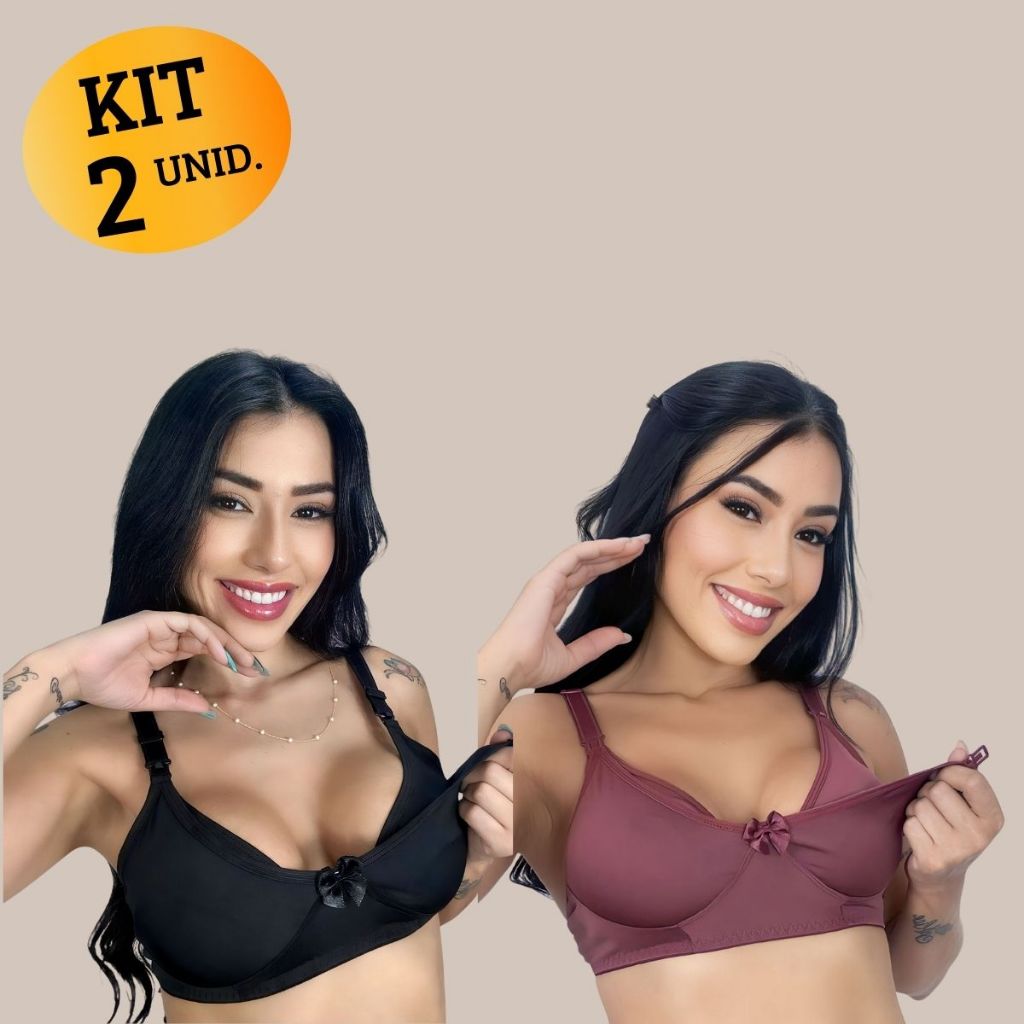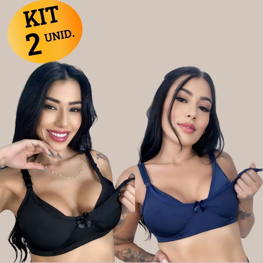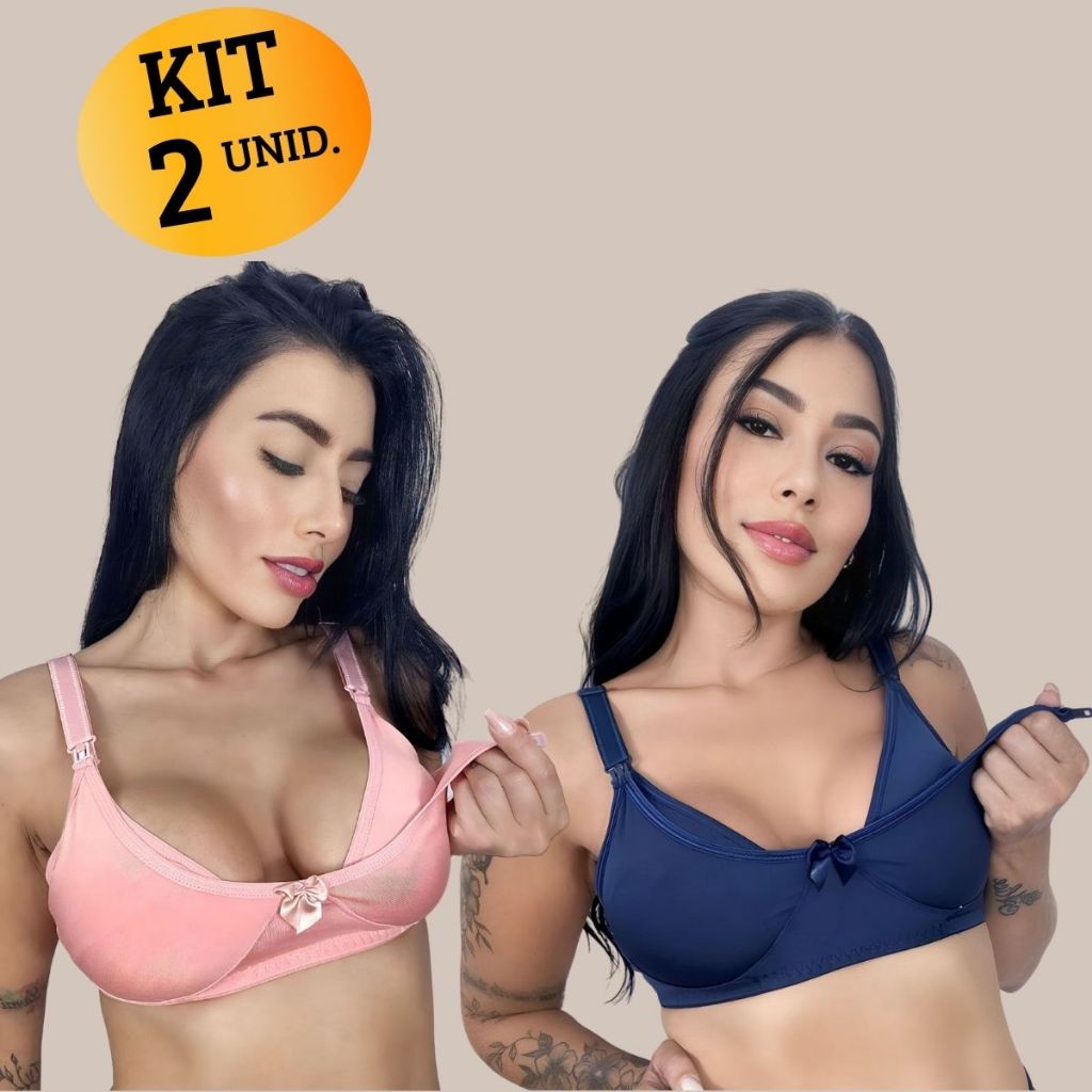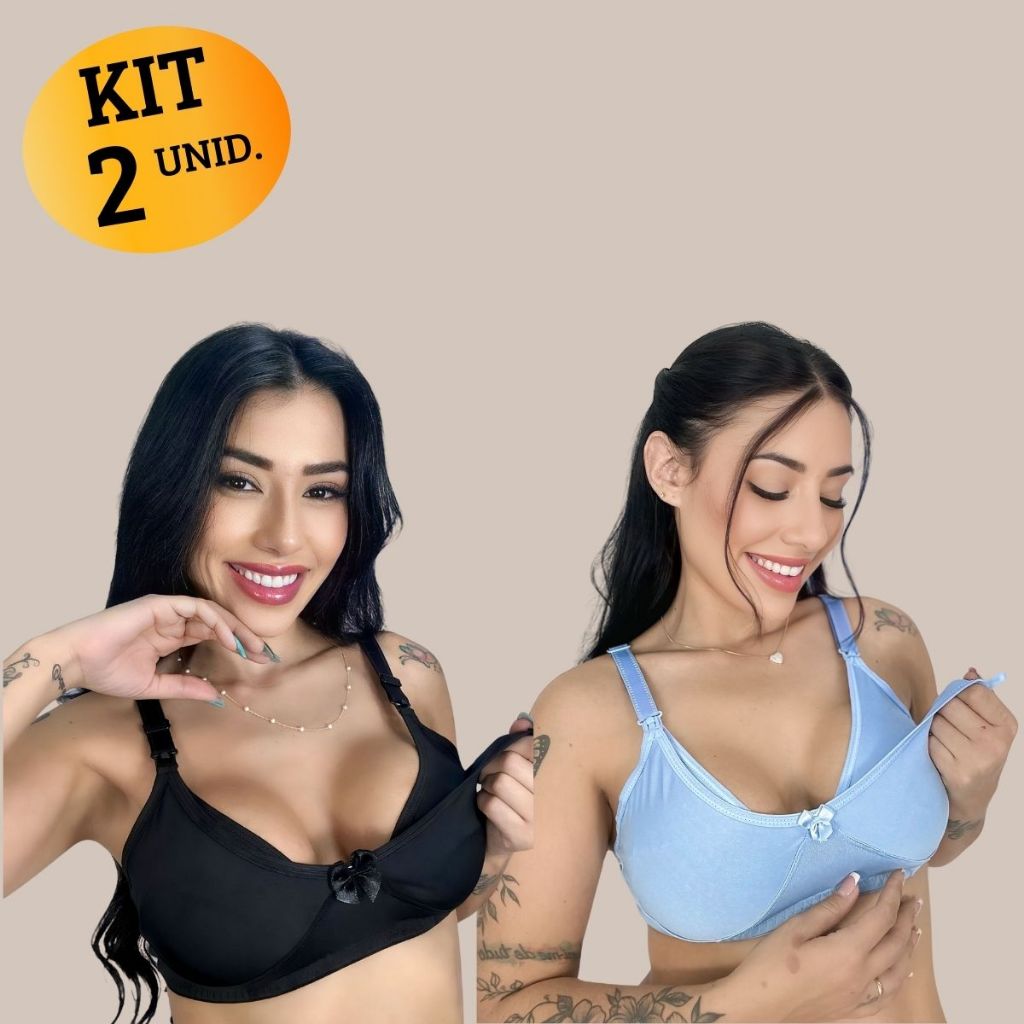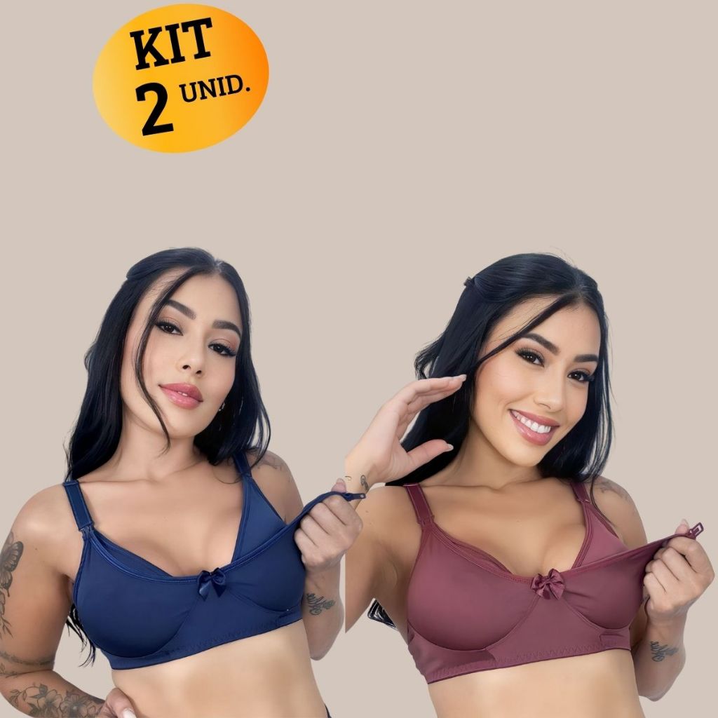Kit com 02 unidades de SUTIÃ Amamentação Alça Abre Fácil Reforçada MICROFIBRA Gestante Grávida.