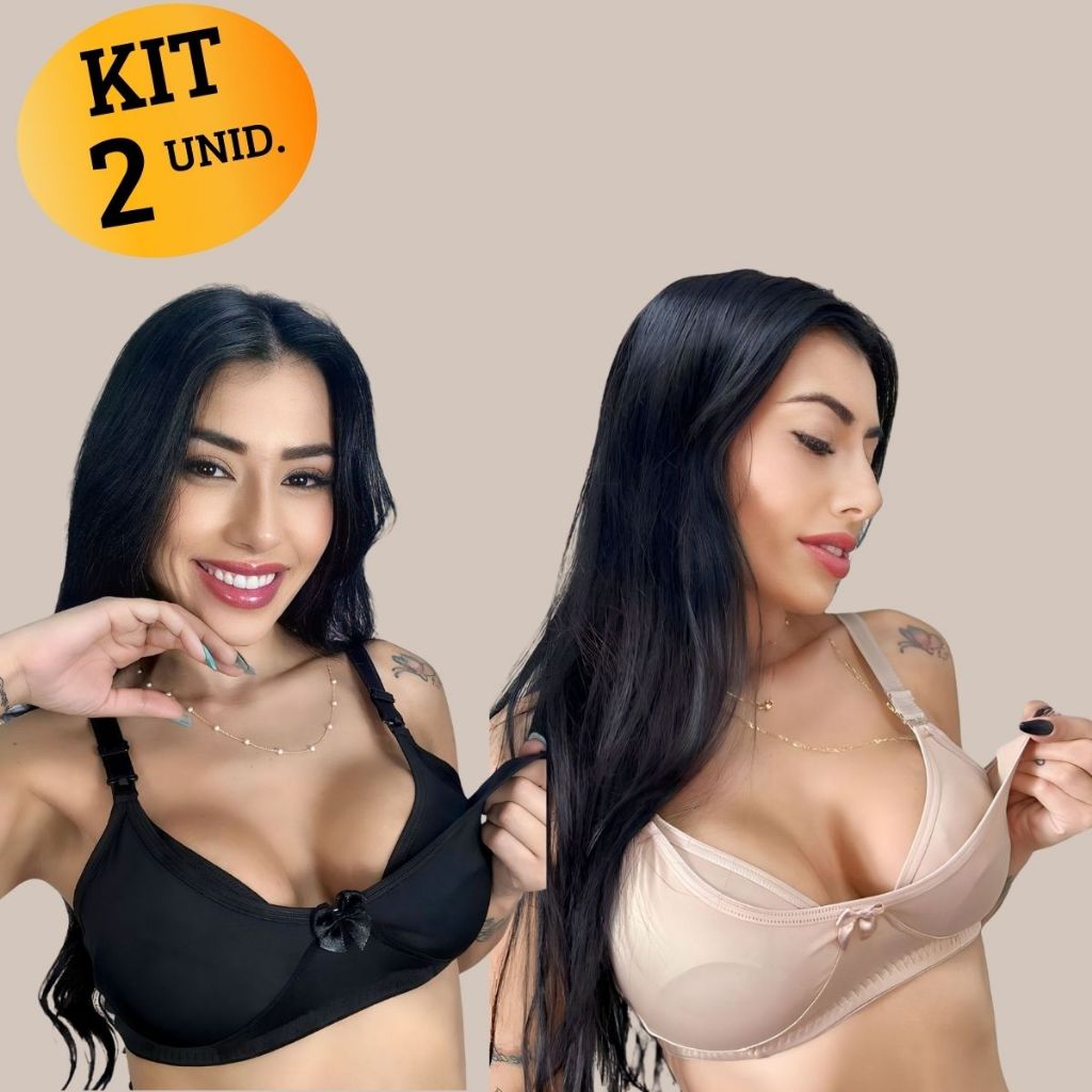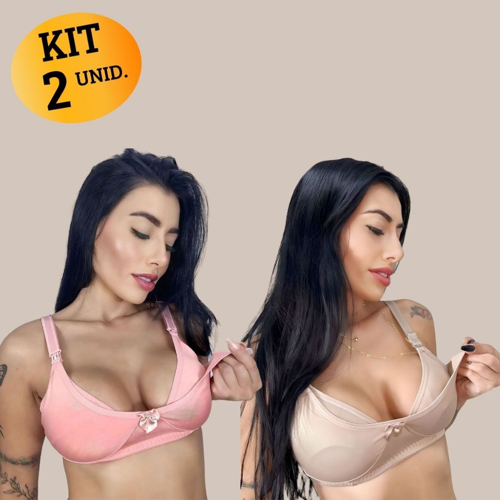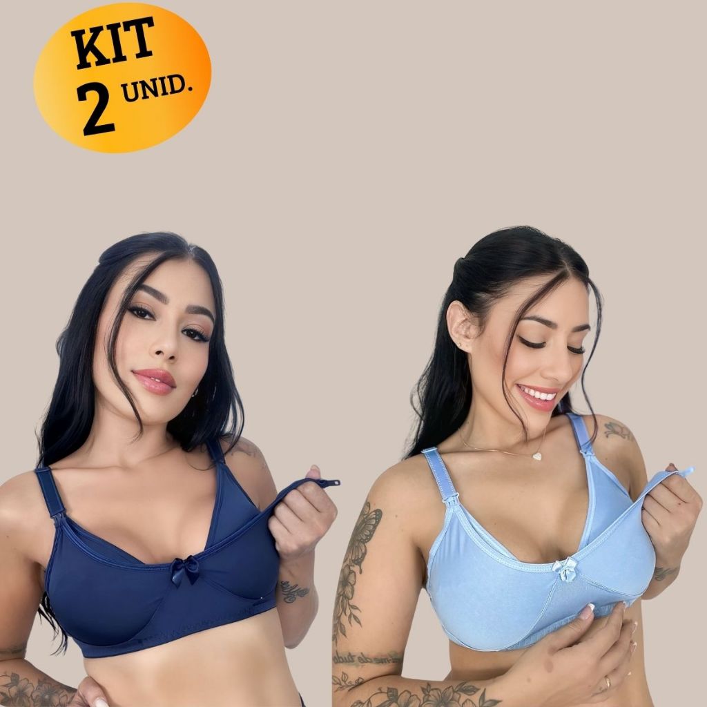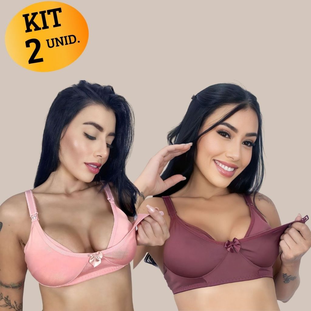 Kit com 02 unidades de SUTIÃ Amamentação Alça Abre Fácil Reforçada MICROFIBRA Gestante Grávida.