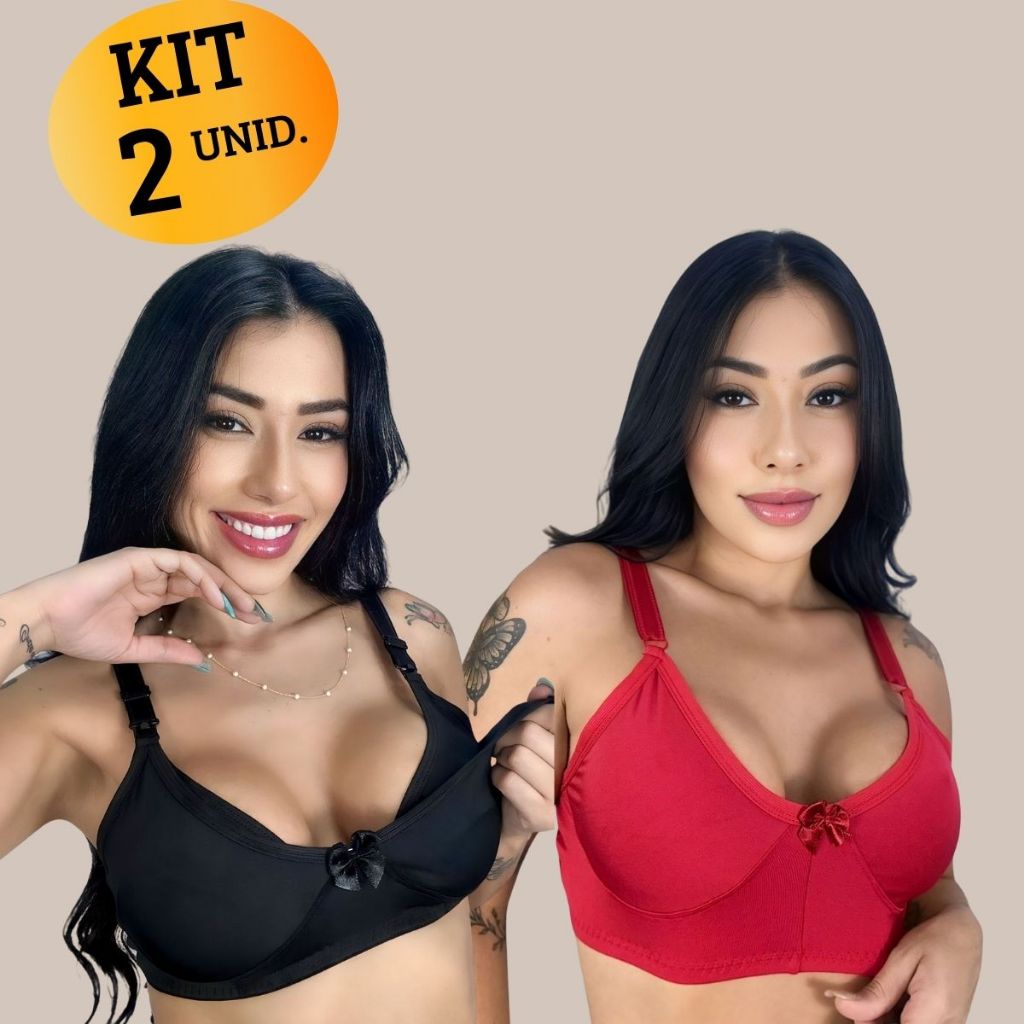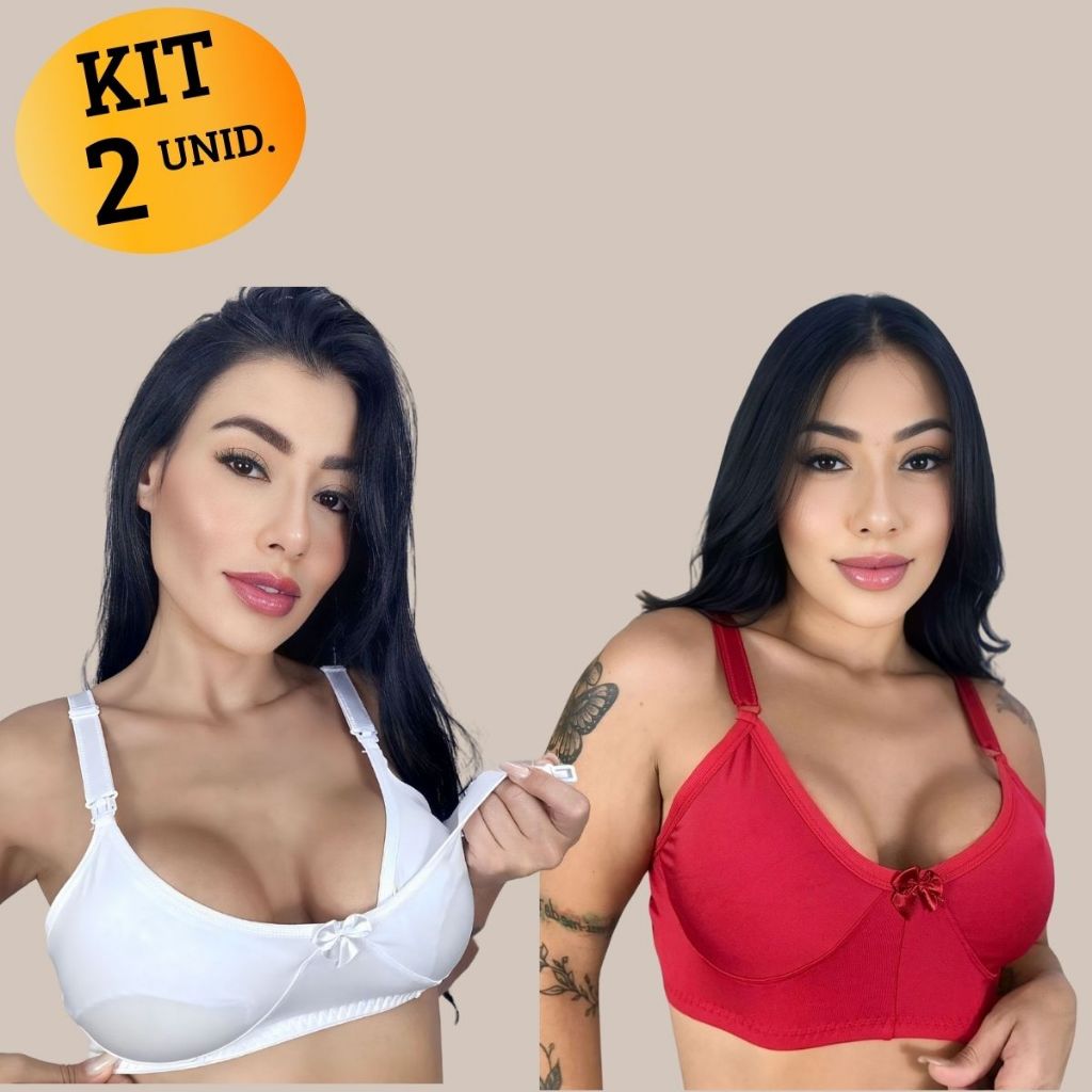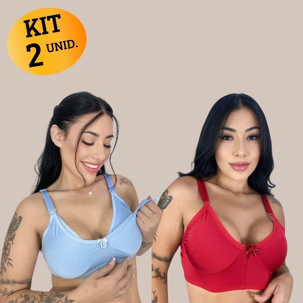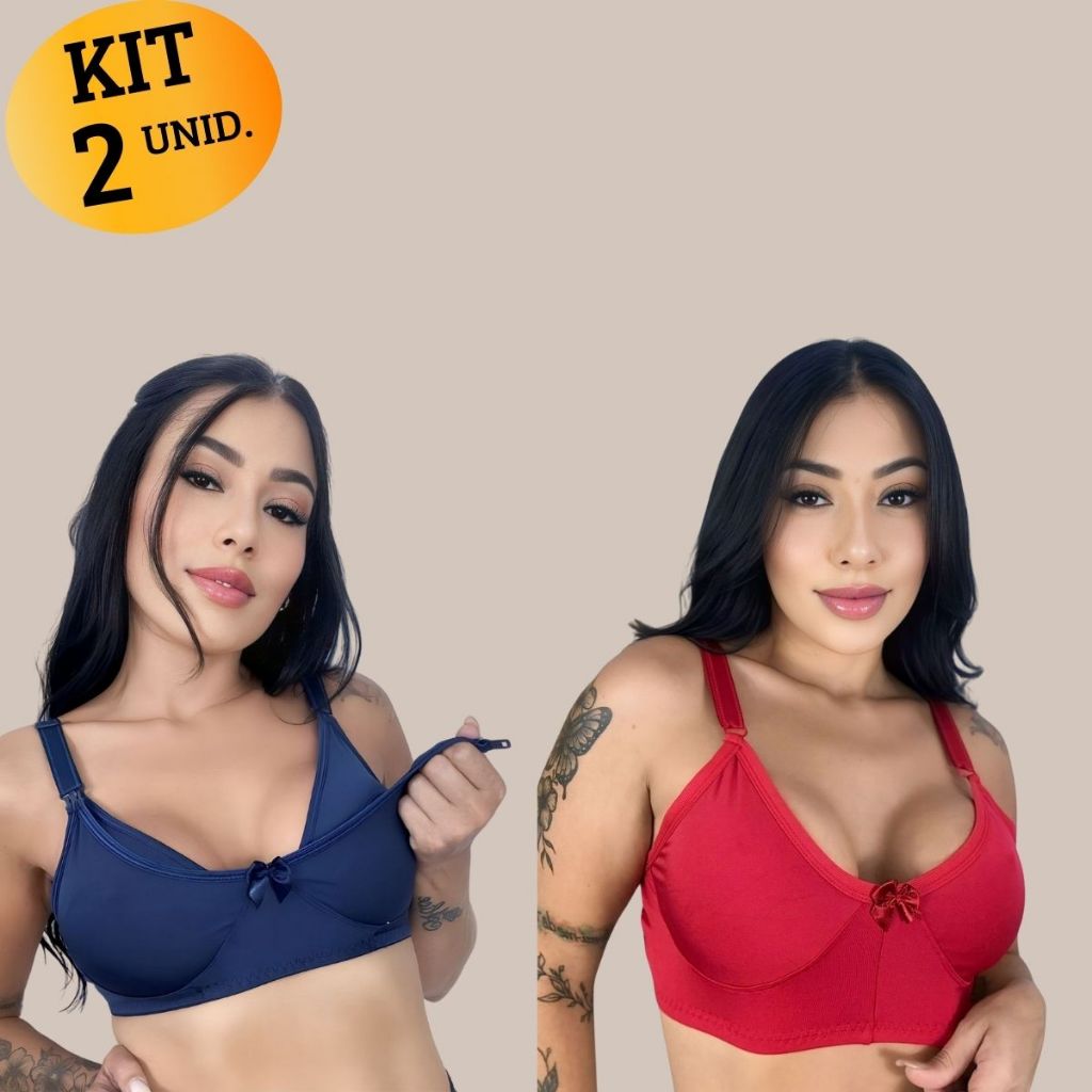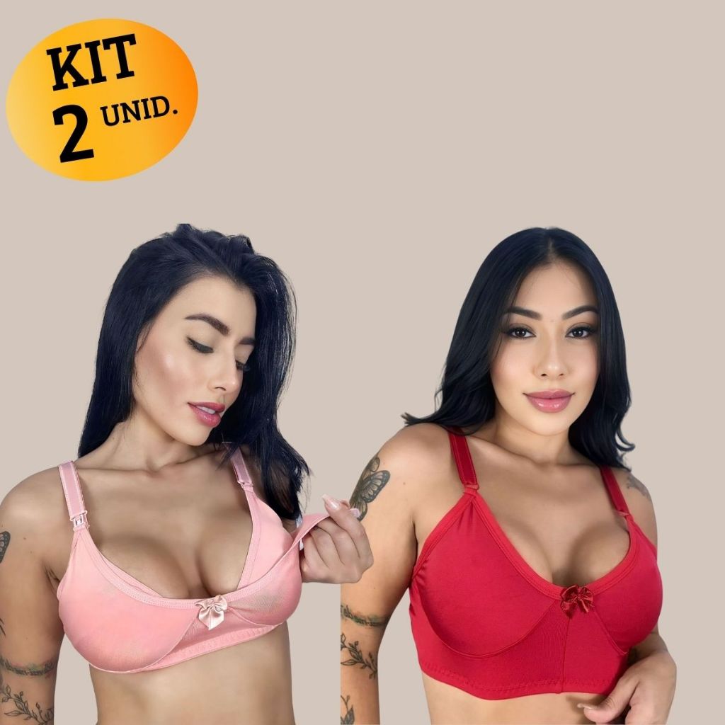 Kit com 02 unidades de SUTIÃ Amamentação Alça Abre Fácil Reforçada MICROFIBRA Gestante Grávida.