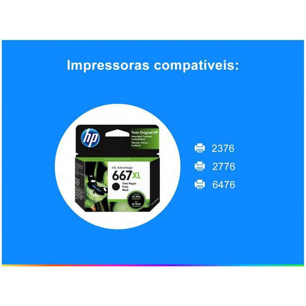 Cartucho 667XL Preto Alto Rendimento - 3YM81AL - 2376/ 2776/ 6476, 5076/ 5276