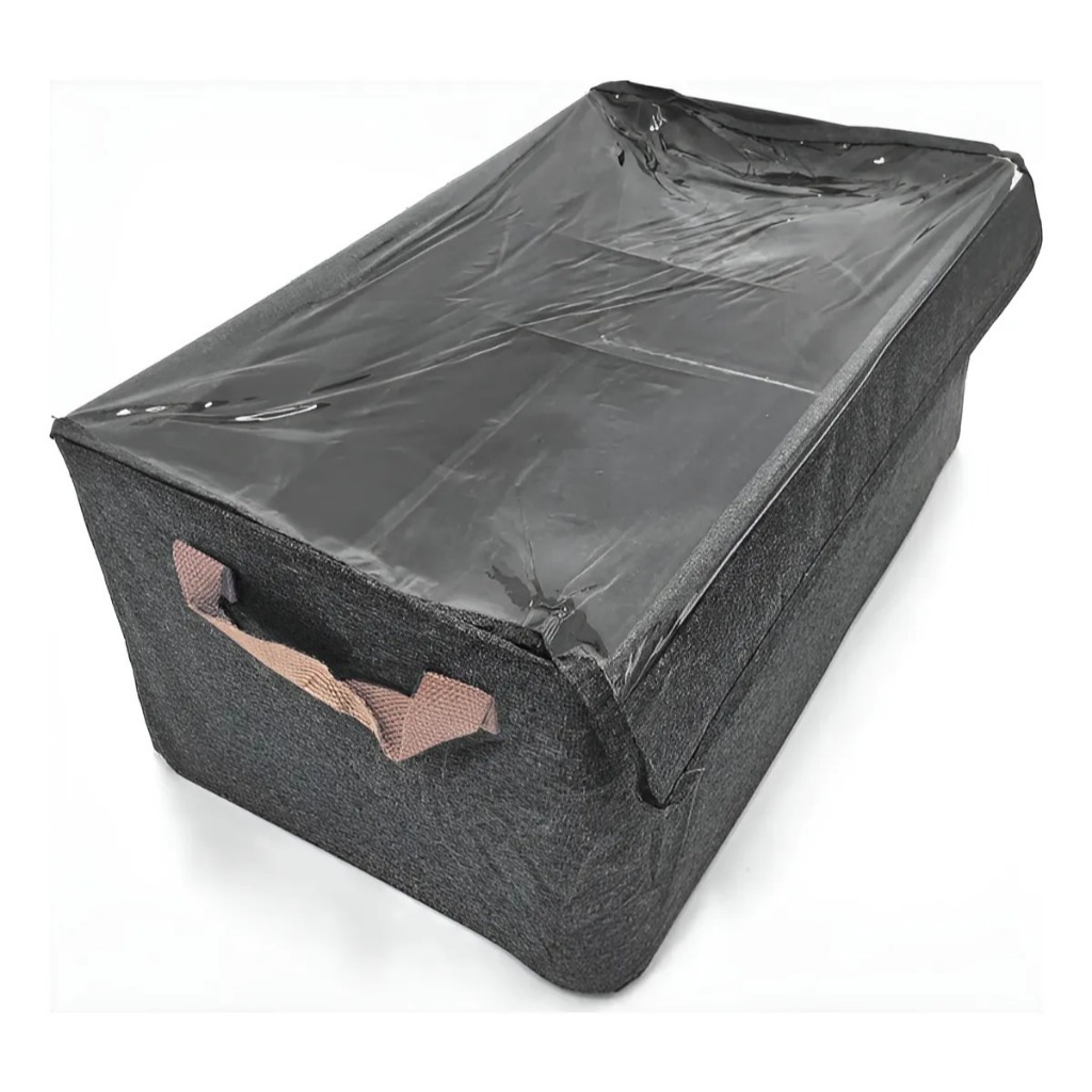 Caixa de Armazenamento de Roupas Cinza Dobrável à Prova D'água com Tampa Transparente