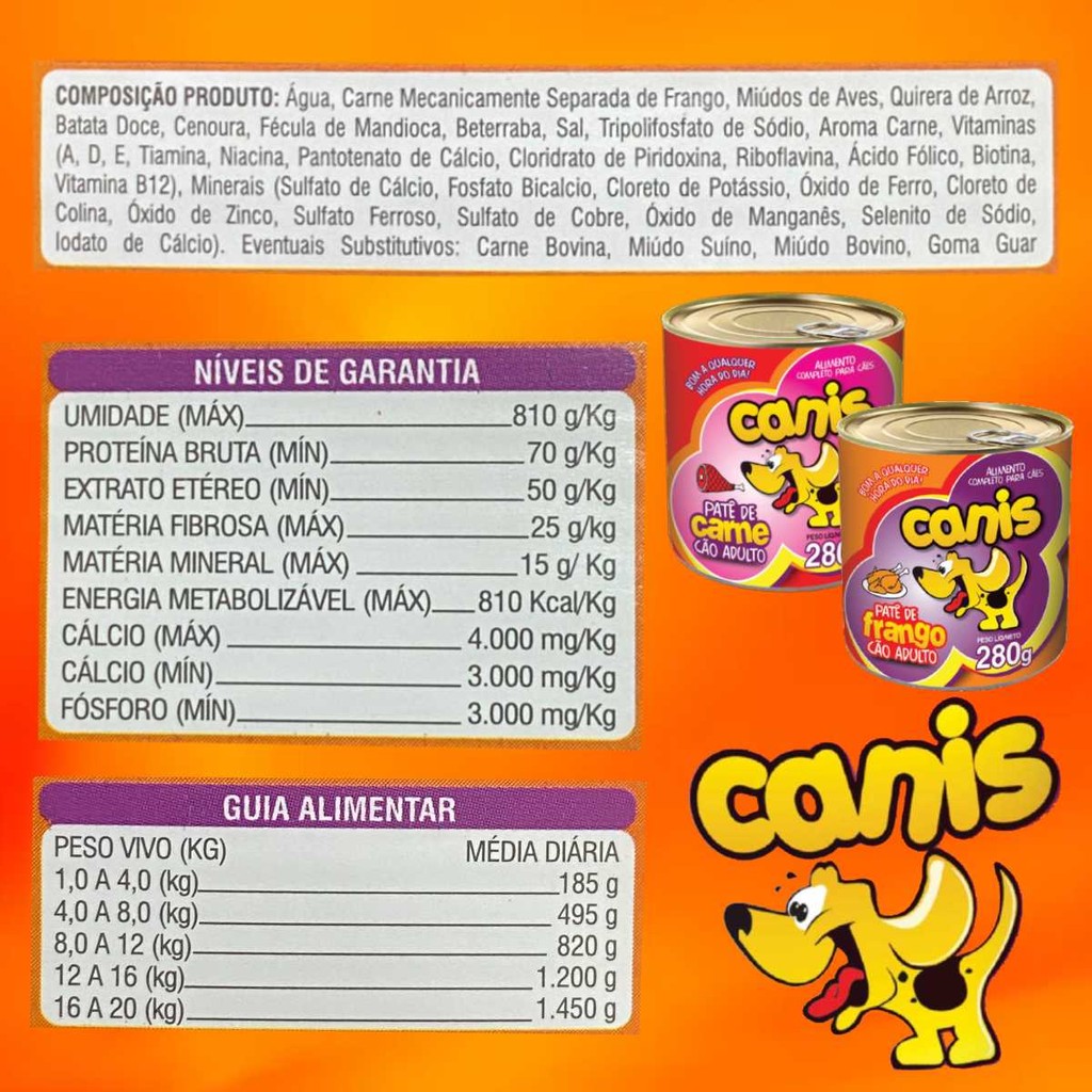 Kit Patê Para Cachorro Canis Adulto Sabor Frango 280g 12un
