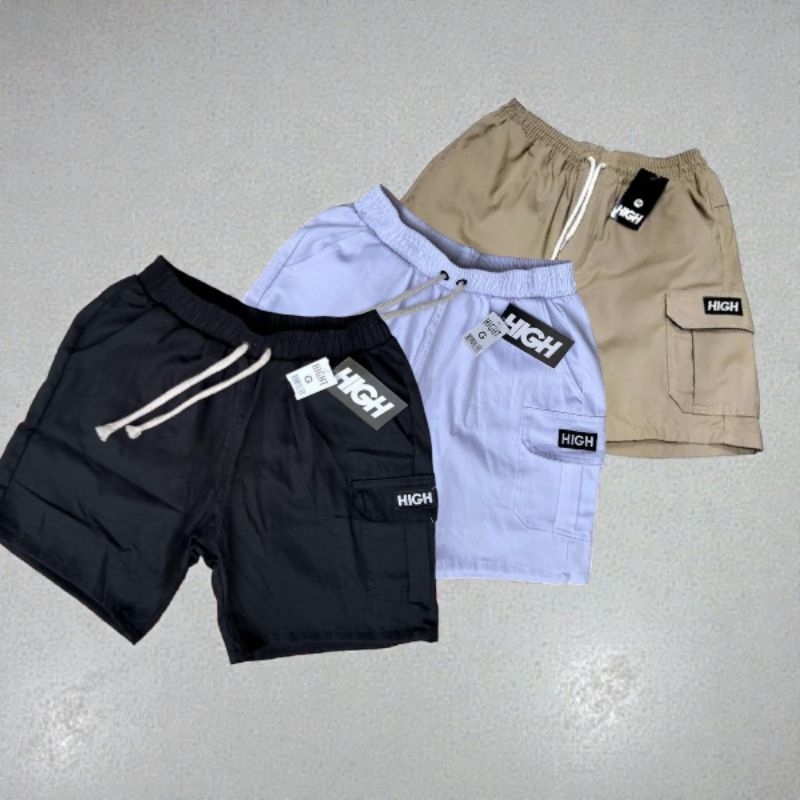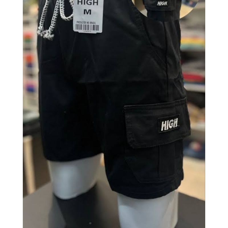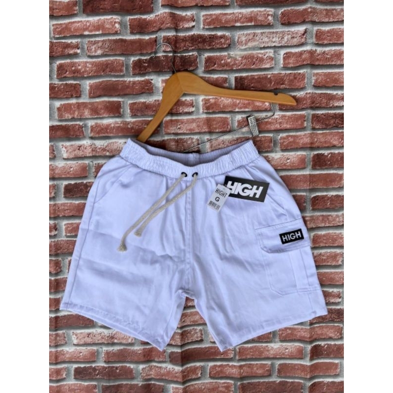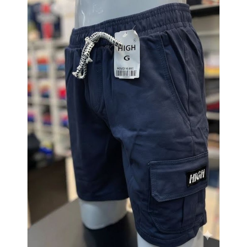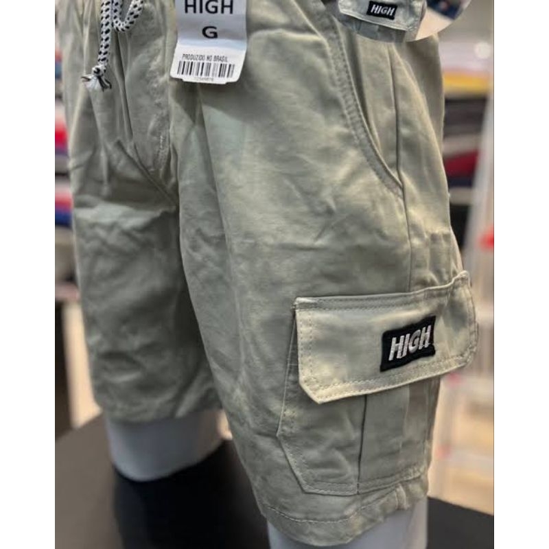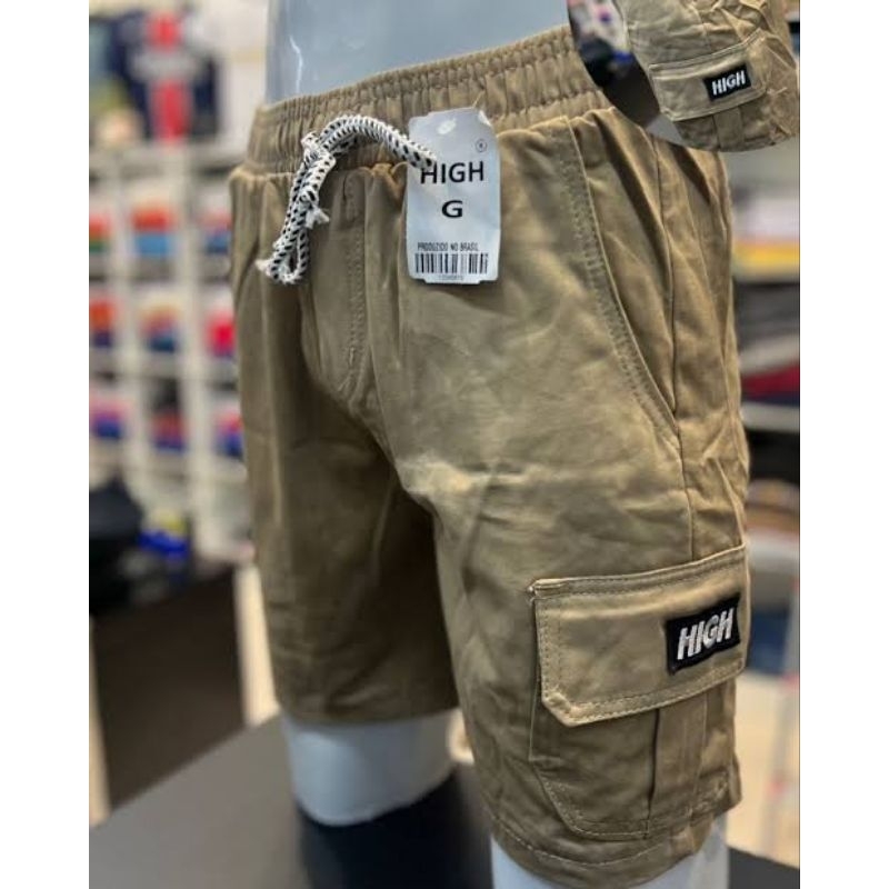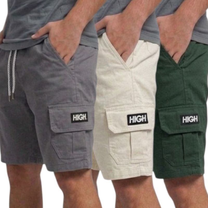 Shorts Cargo masculino em Sarja Com Bolsos Laterais Logo Bordado Cordão de Ajuste Na Cintura