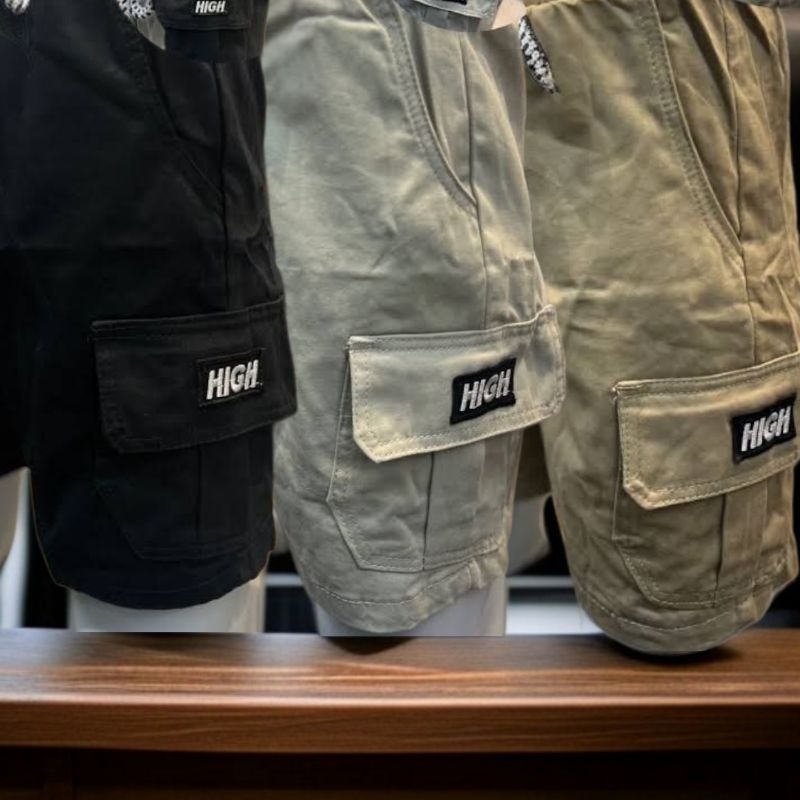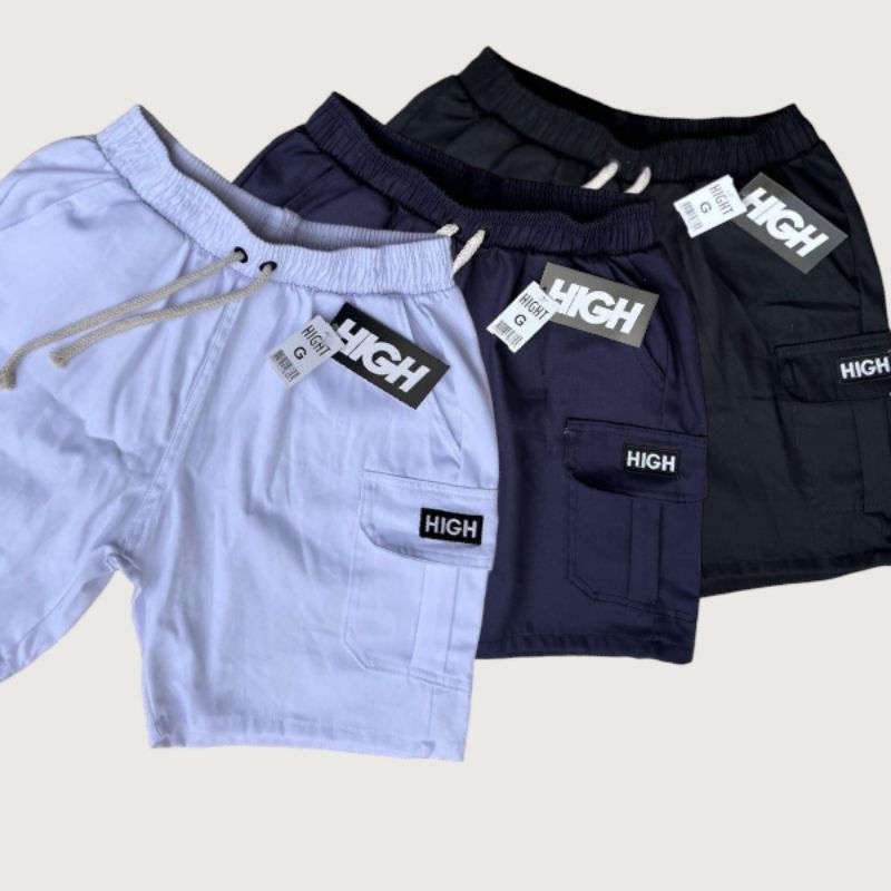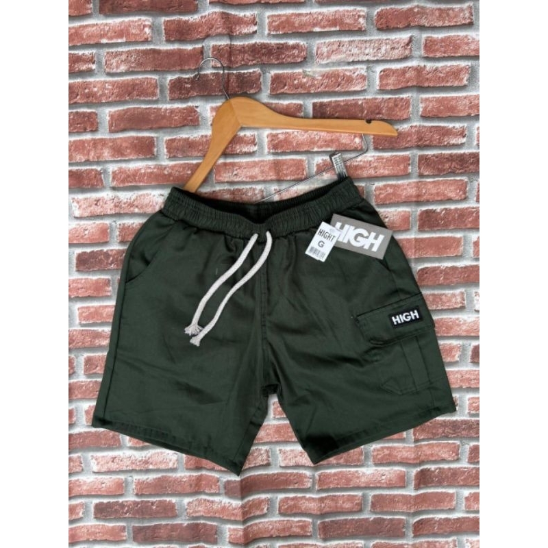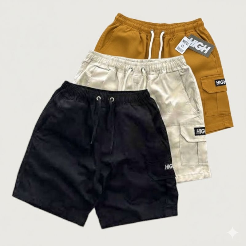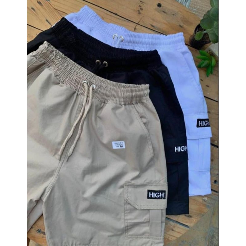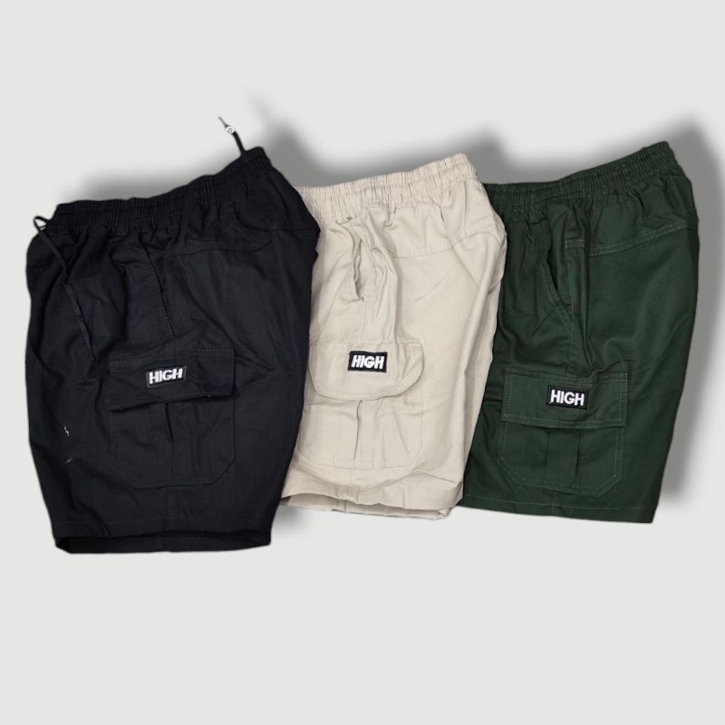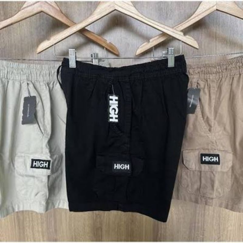 Shorts Cargo masculino em Sarja Com Bolsos Laterais Logo Bordado Cordão de Ajuste Na Cintura