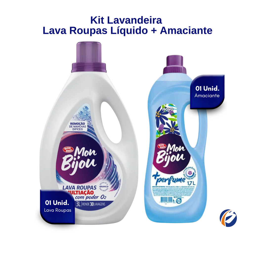 Kit Lava Roupas Action 3L + Amaciante 1,7L Mon Bijou