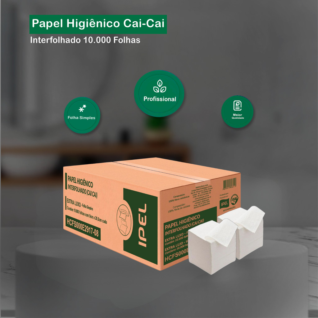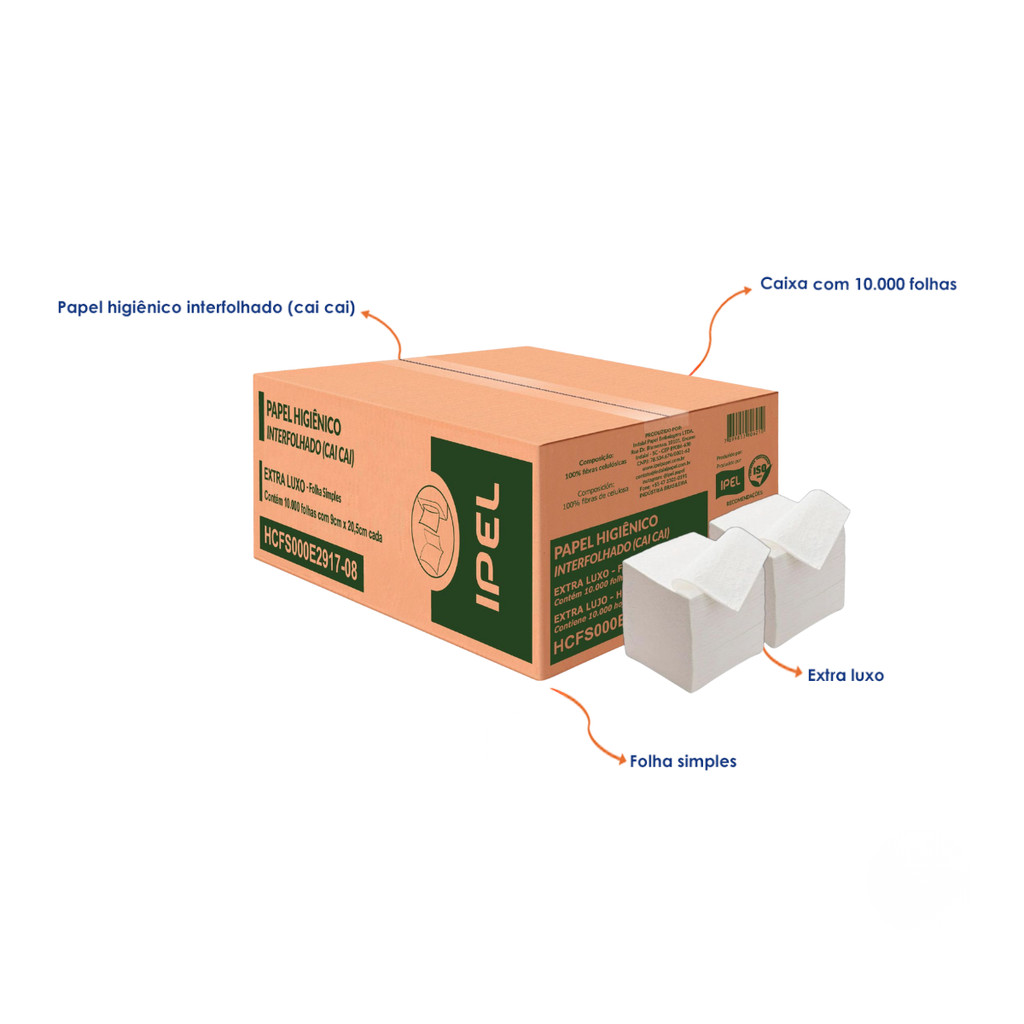Papel Higiênico Interfolhado Folha Simples Extra Luxo 9x20,5 com 10.000 unidades Ipel