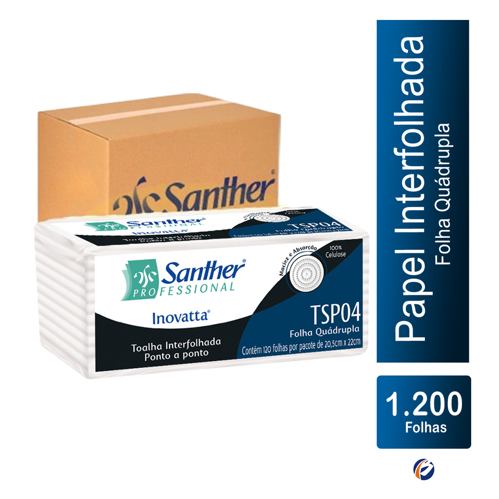 Papel Toalha Interfolha 2 Dobras Folha Quádrupla TSP04 1.200 folhas Inovatta