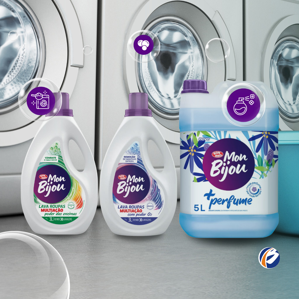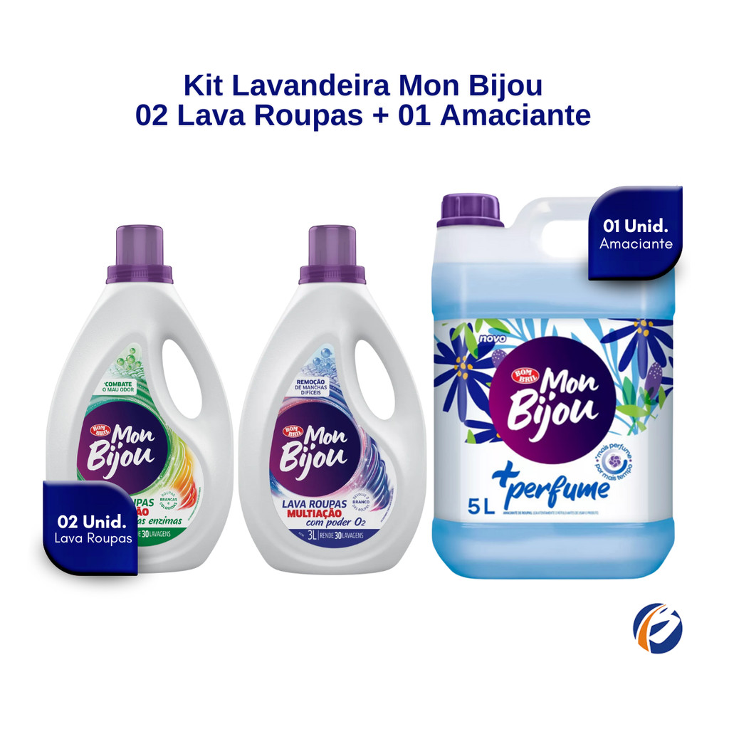 Kit 02 Lava Roupas Action/Fresh 3L + Amaciante 5L Mon Bijou
