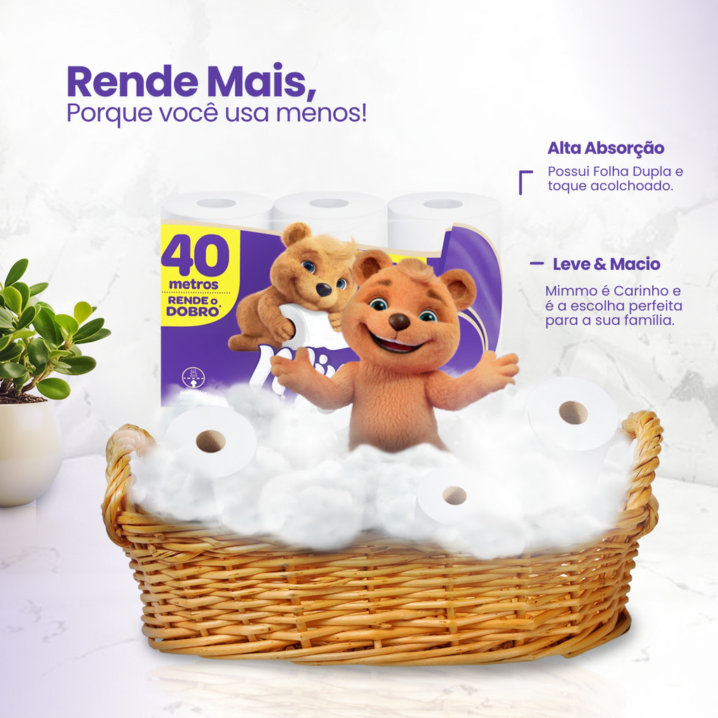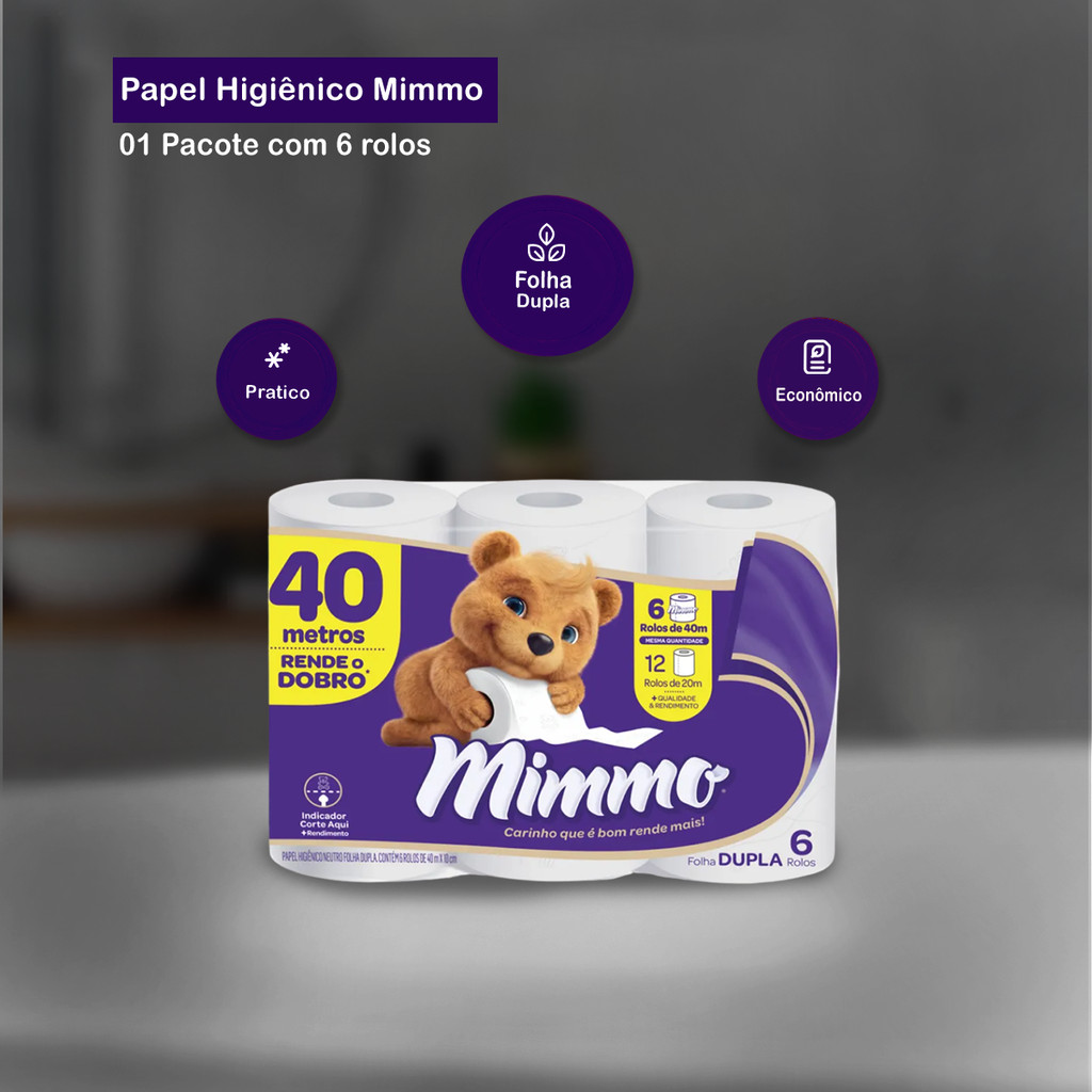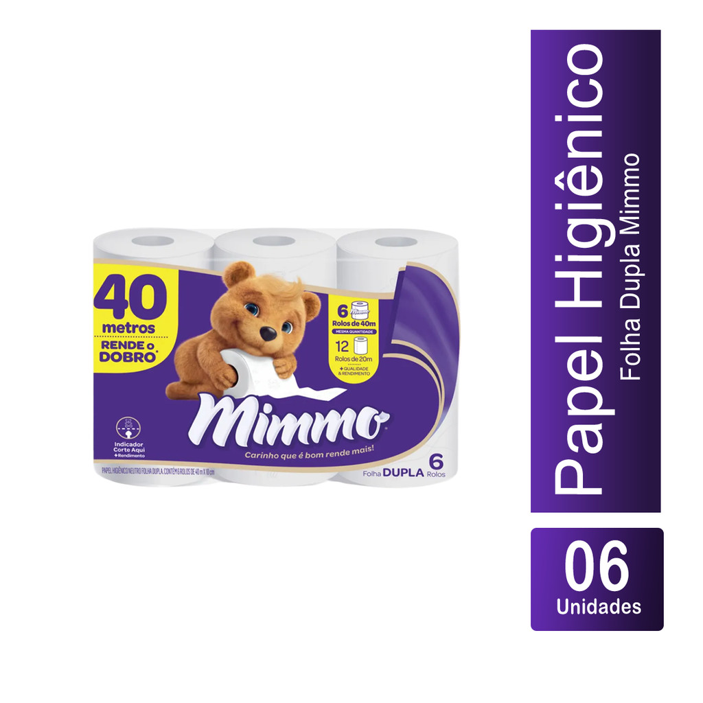 Papel Higiênico Folha Dupla 40m com 6 Rolos Mimmo