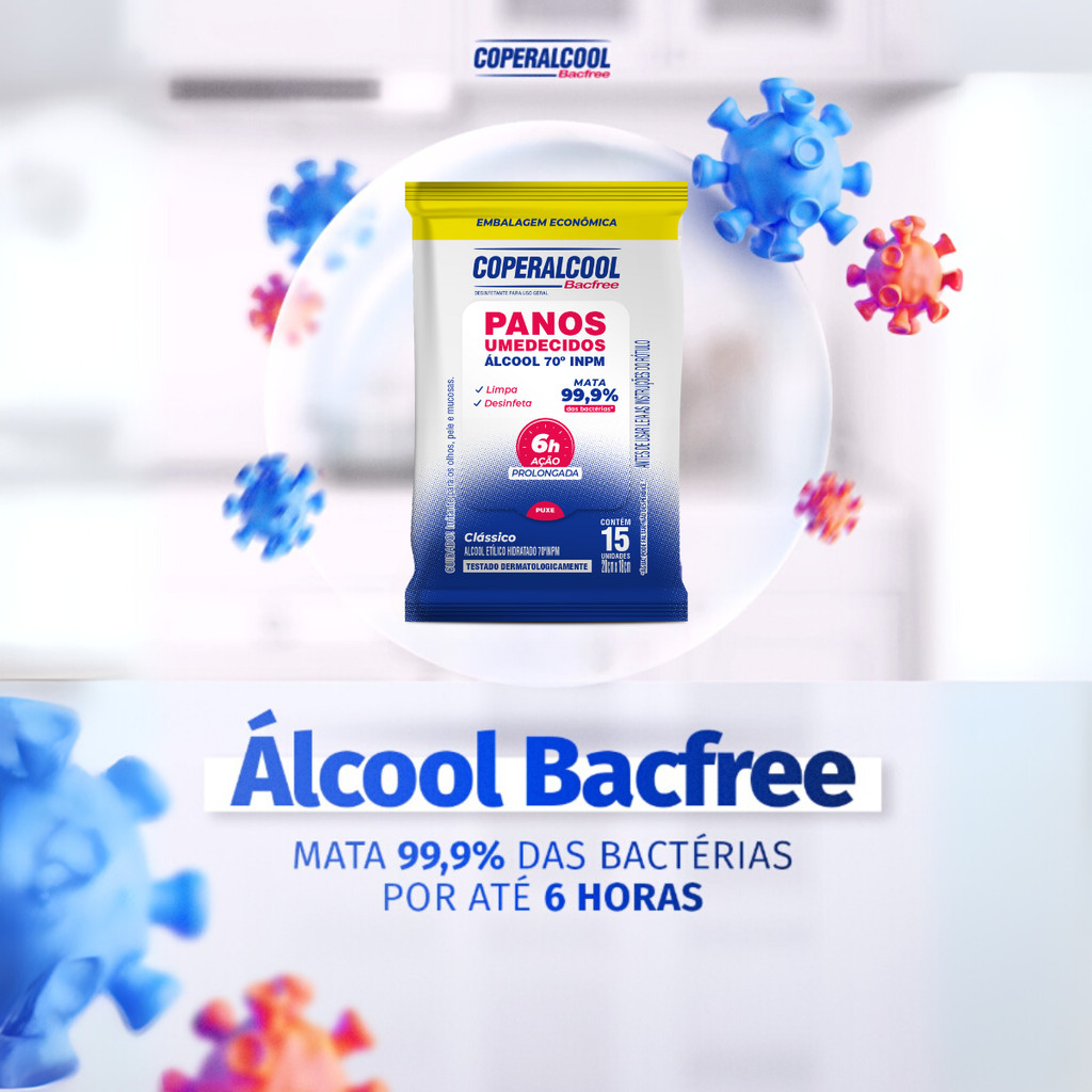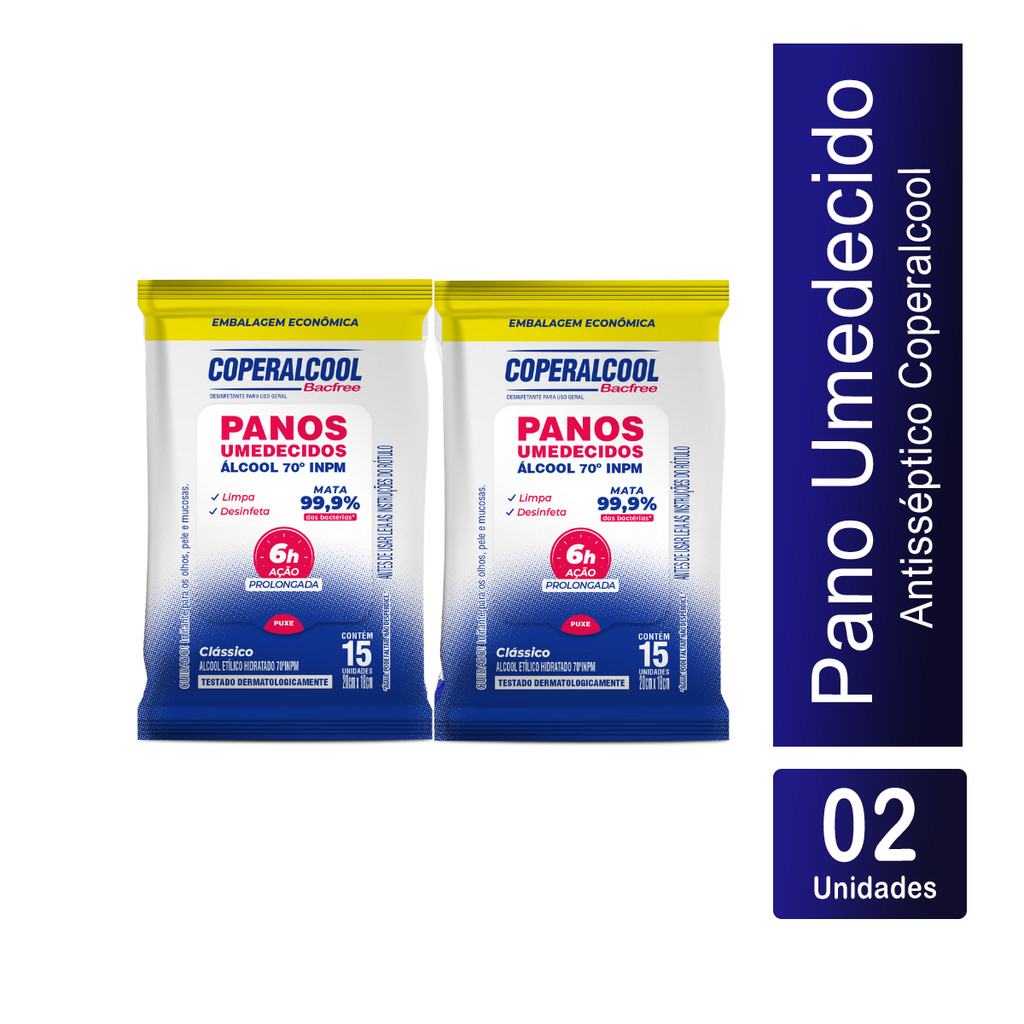 Kit 02 Pacotes de Lenços Umedecidos Clássico com Álcool 15 Lenços cada Coperalcool