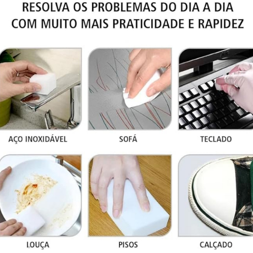 Kit 10 Esponja Mágica Branca Melamina Bucha Tira Mancha Limpeza Desengordura Max Clean