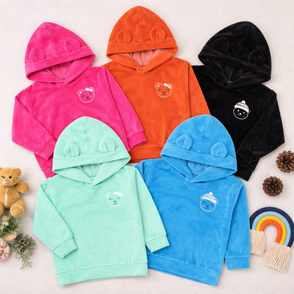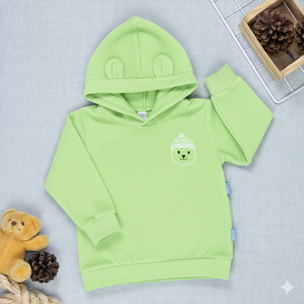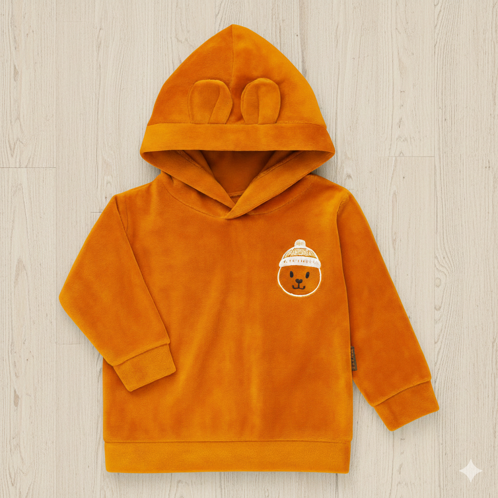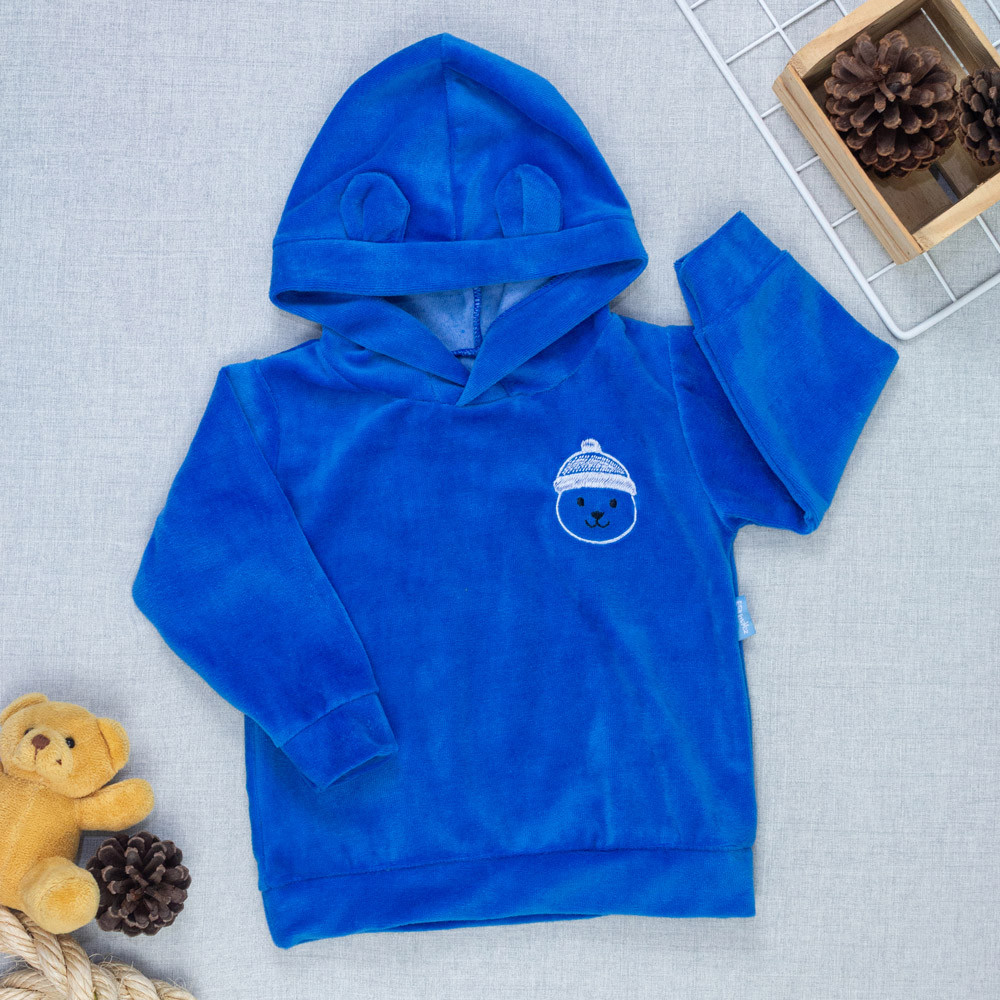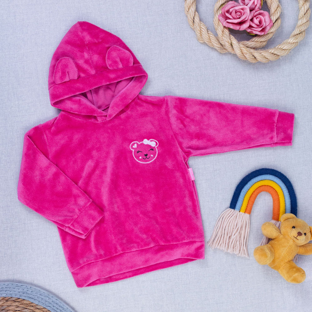 Blusa de Frio Plush Bebê com Capuz e Bordadinho Bear