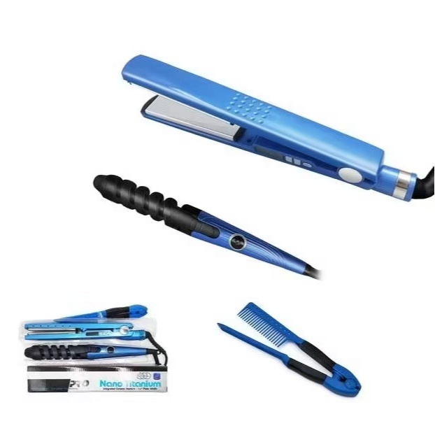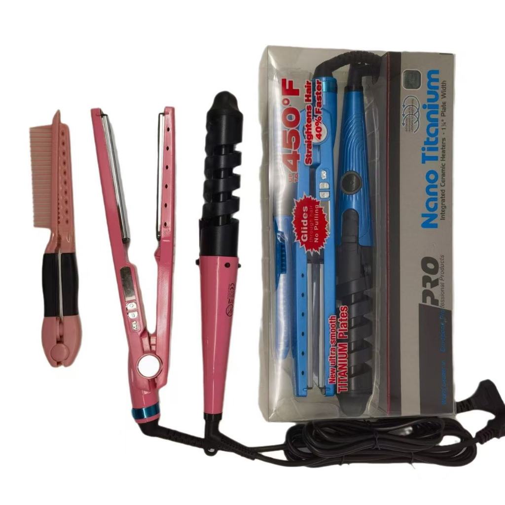 Kit 3completa chapinha Profissional Titanio rosa zul Anti-Frizz Bivolt , Oferta Imperdível Danos Térmicos