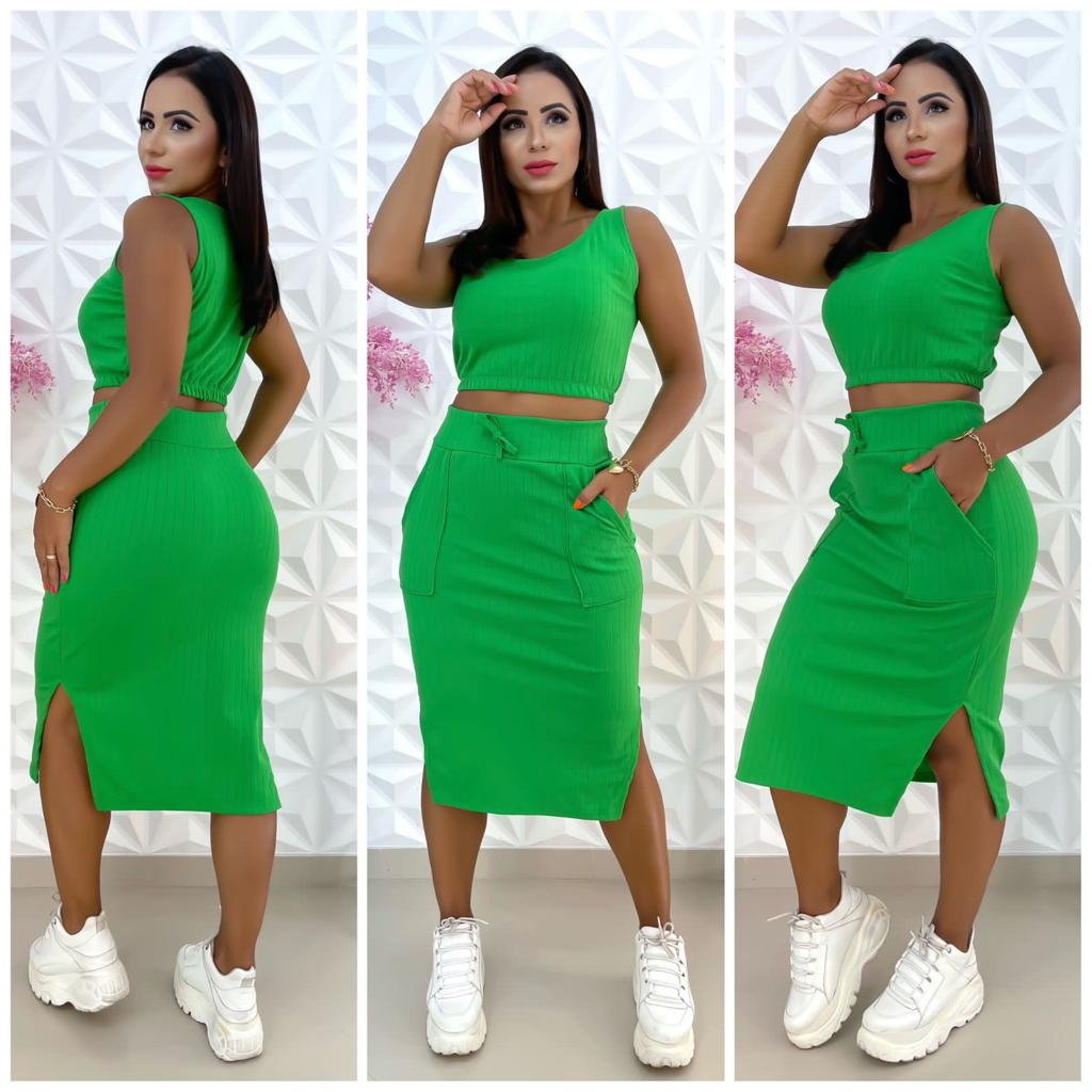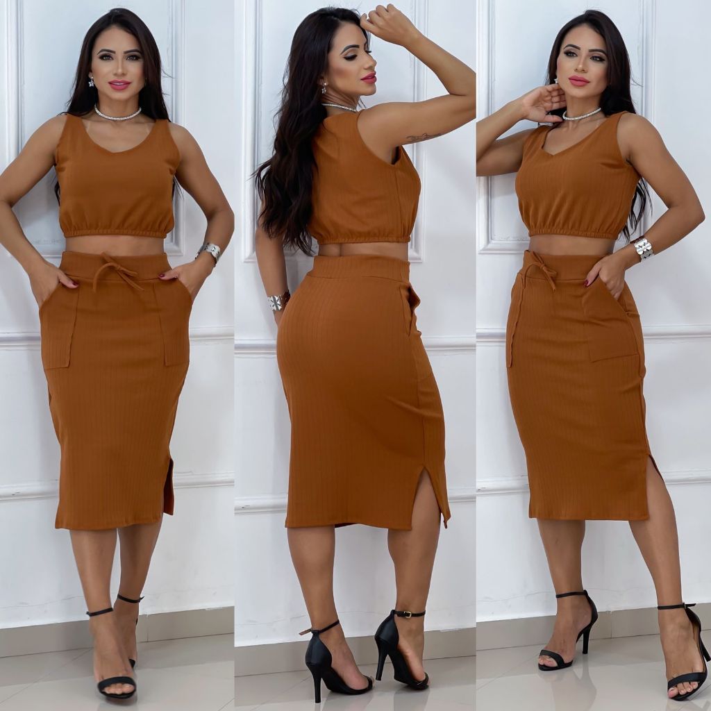 Conjunto Cropped e Saia Tendencia da Moda