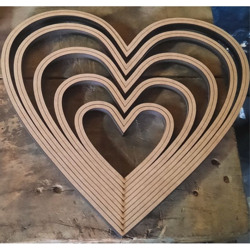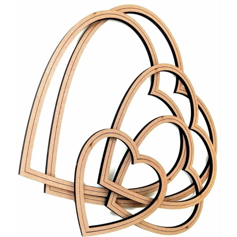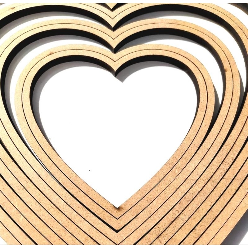 kit bastidores coração, 5 bastidores mdf 6mm, moldura para bordados de 12cm a 33cm