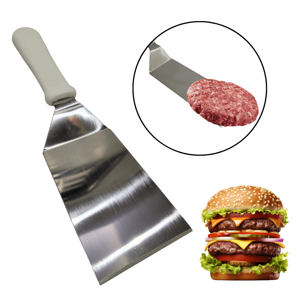 Kit 7 Peças Hamburgueria Lanchonete Completo Para Chapa Lanche Modelador Hambúrguer Espátula Aço