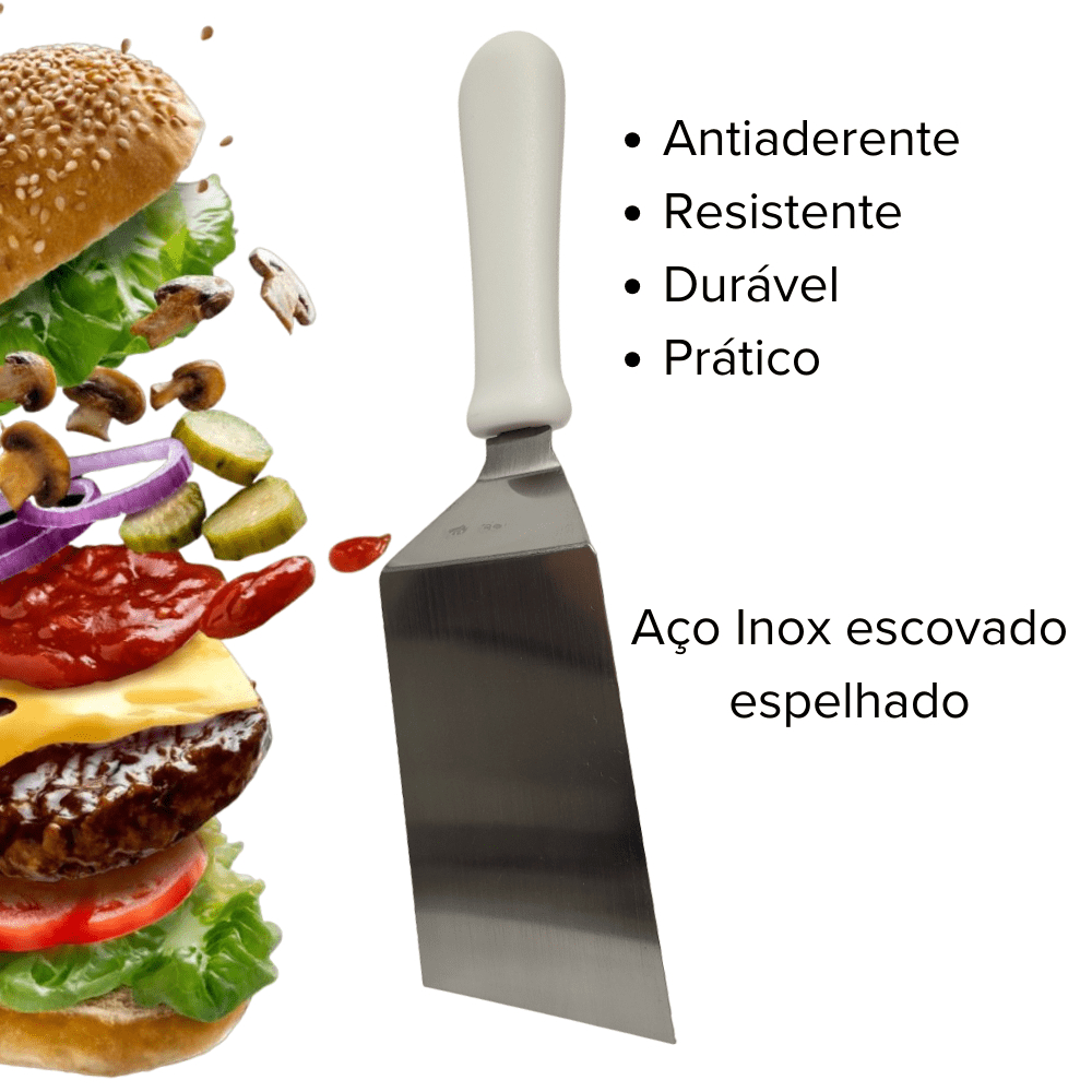 Kit 2 Espátulas Inox Reta Curva 2 Abafadores Alumínio Para Lanche Chapa Cozinha Chapeiro Lanchonete