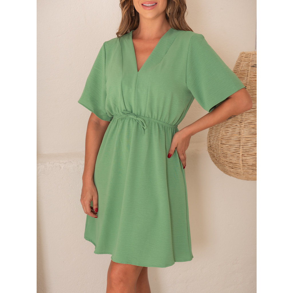 Vestido Midi Curto Duna Soltinho Decote V Moda Elegante Casual Evangélica Igreja Verão e Primavera