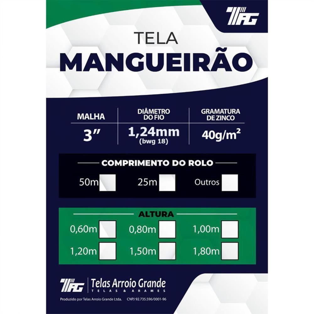 TELA CERCA MANGUEIRÃO MALHA 3" FIO BWG 18(1,24mm) RL 25X0,8m