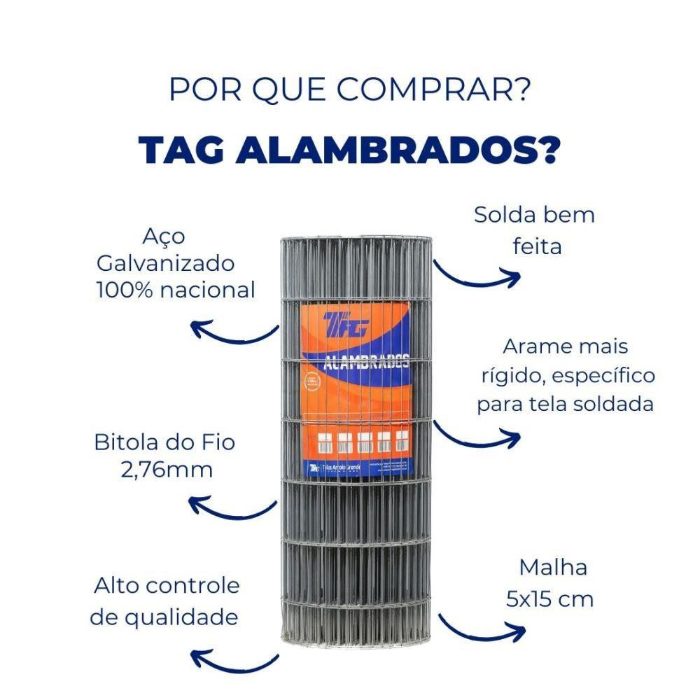 TELA SOLDADA TAG MALHA 5x15cm FIO 2,76mm RL 25X1,0m