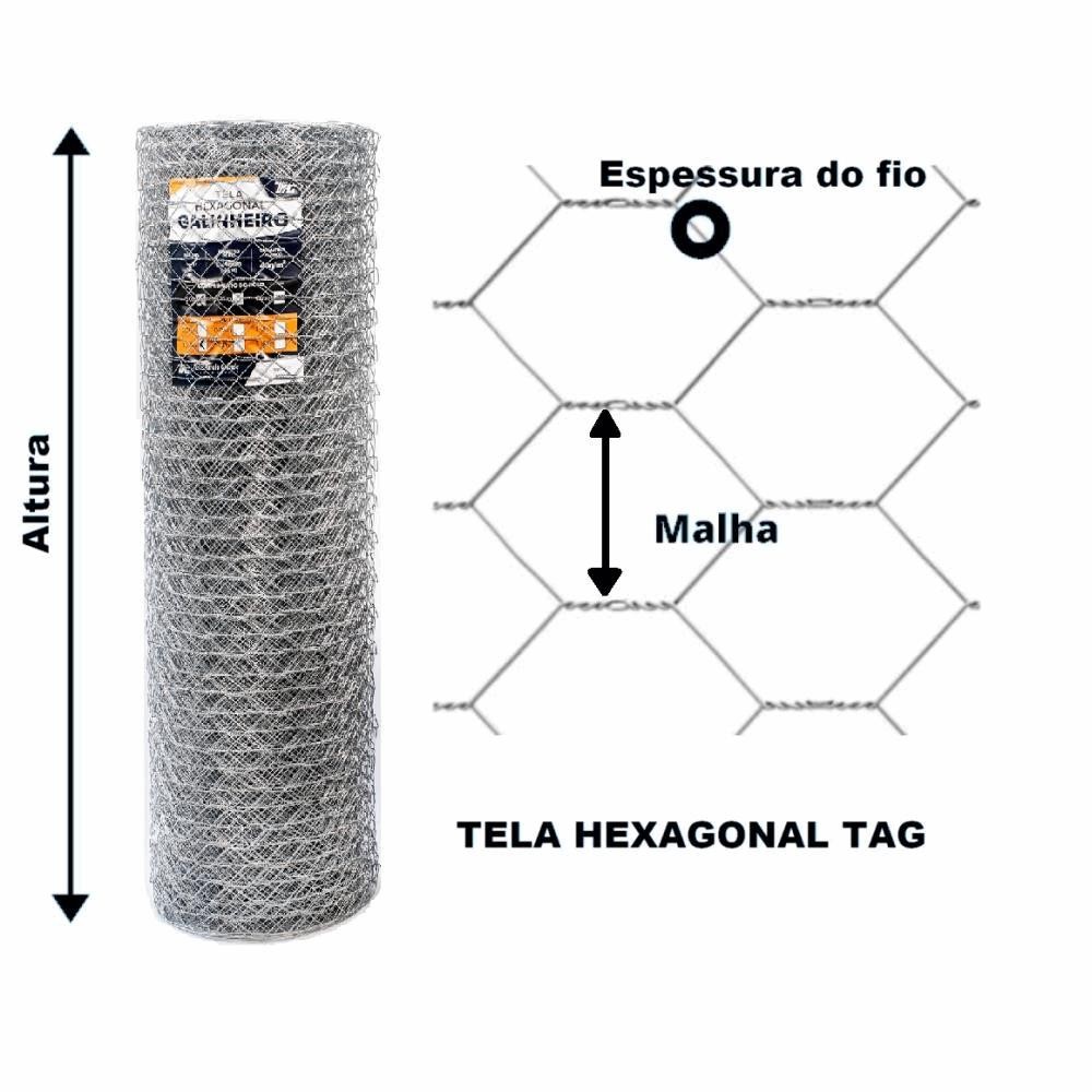TELA HEXAGONAL GALINHEIRO TAG MALHA 2" FIO BWG 18 (1,24mm) RL 25X1,0m