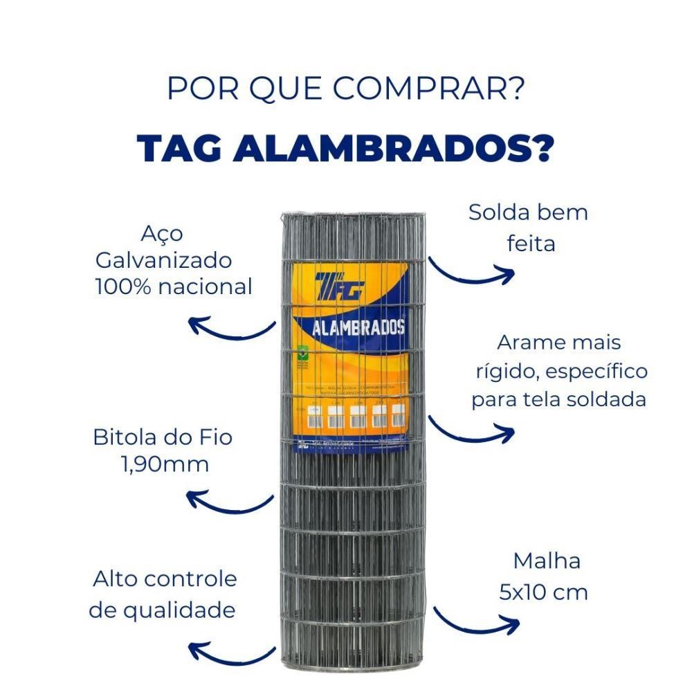 TELA SOLDADA TAG MALHA 5x10cm FIO 1,90mm RL 10X1,2m