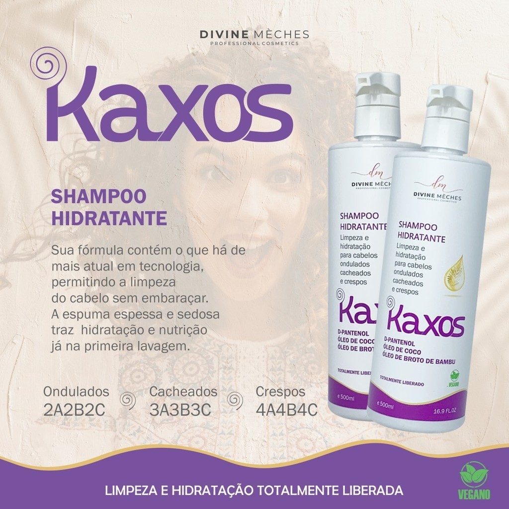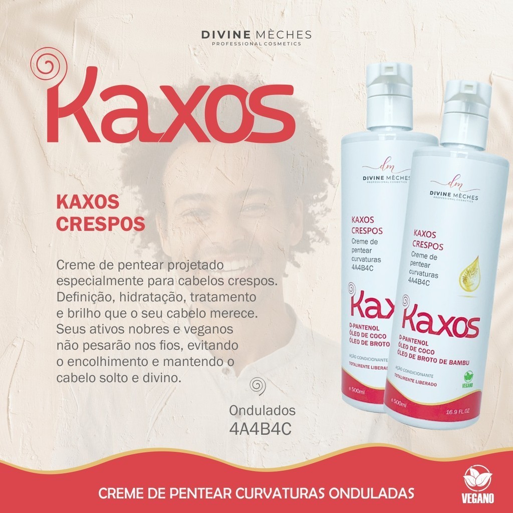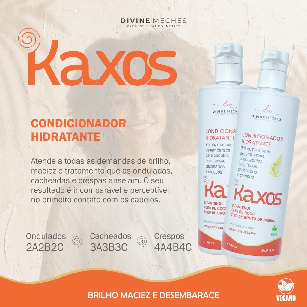 Kit Divine Mèches Kaxos Shampoo Condicionador Creme para Crespos 4a4b4c Máscara