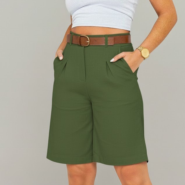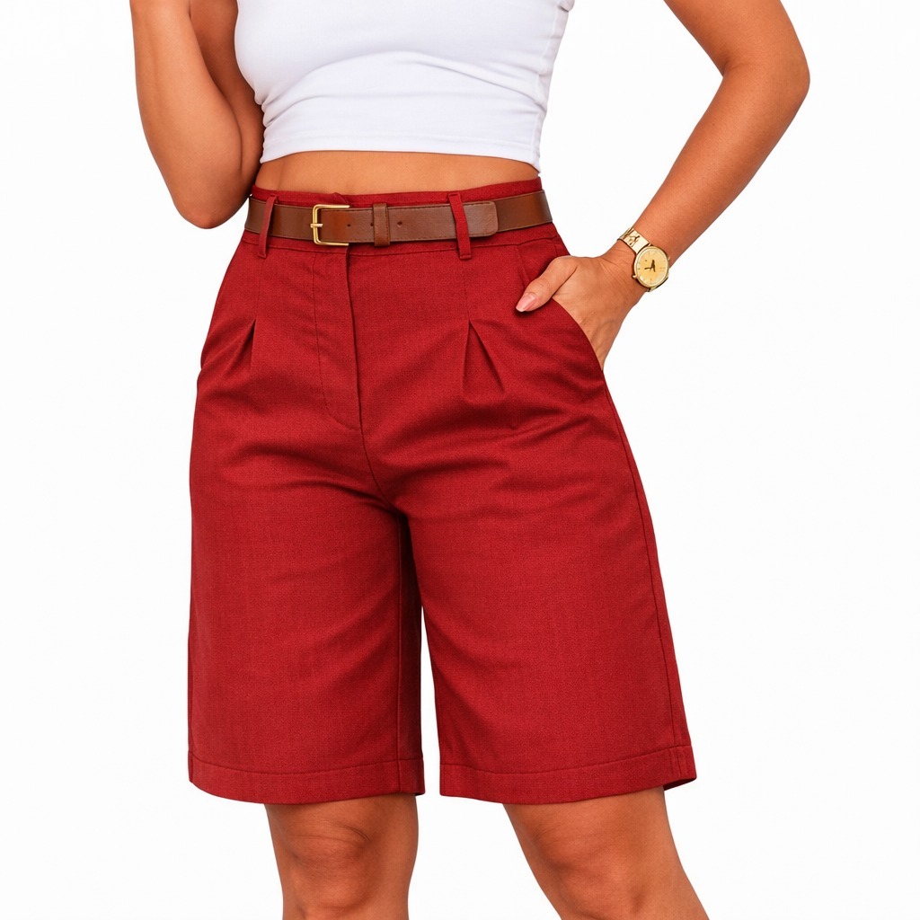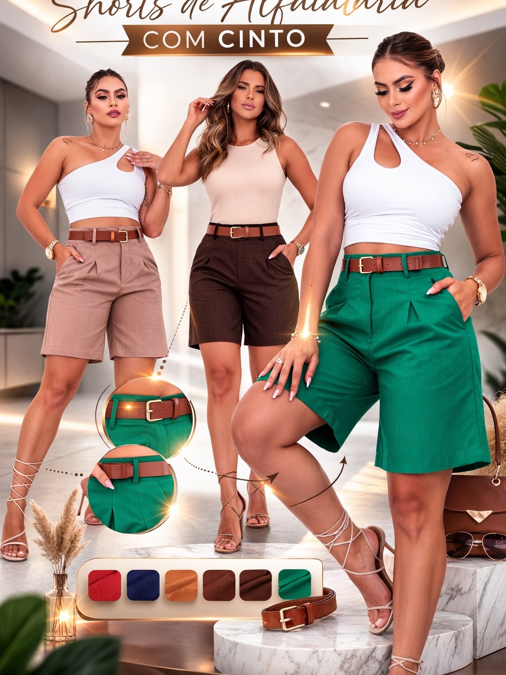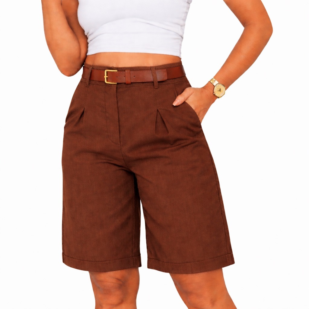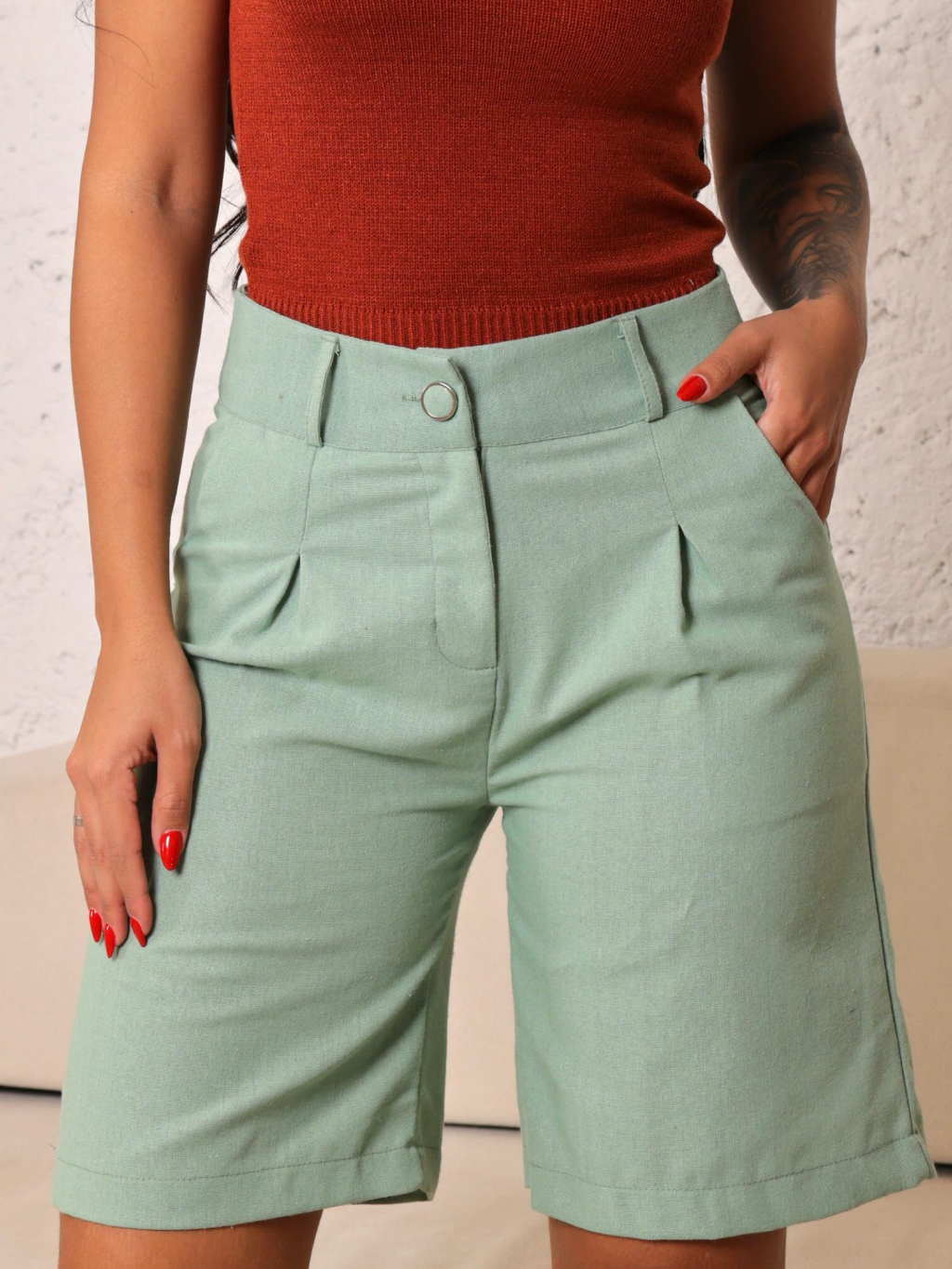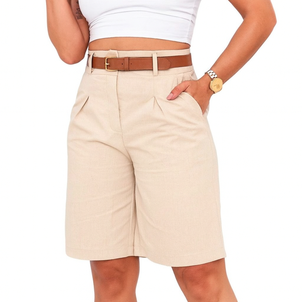 bermuda alfaiataria feminino com cinto Shots Social linho Moda Feminina P, M, G, GG, G1, G2