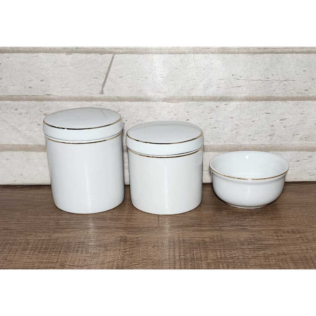 Trio de Pecas Porcelana Decorada Kit Higiene Bebe Bandeja MDF