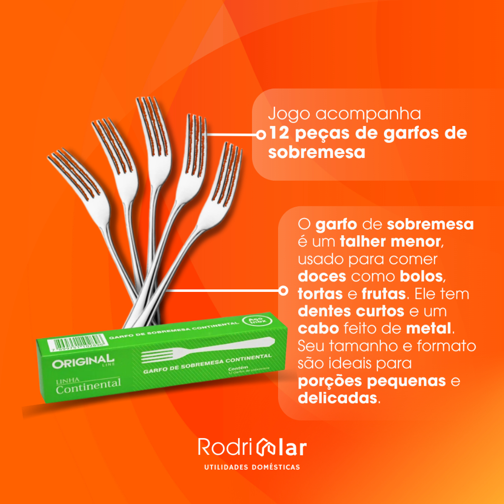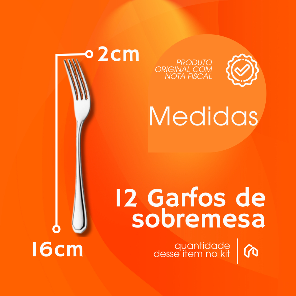 Jogo 12 Garfos Sobremesa Aço Inox Premium Restaurante Buffet