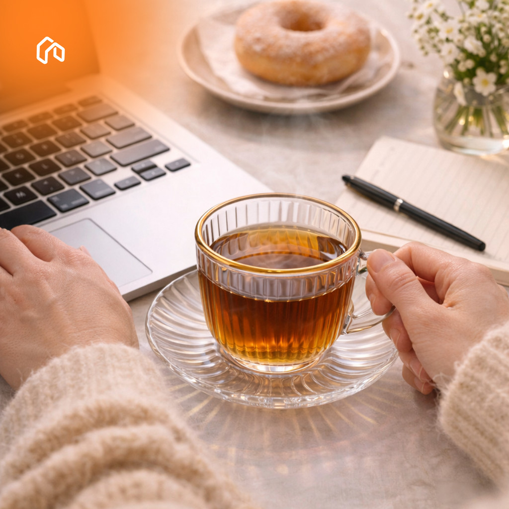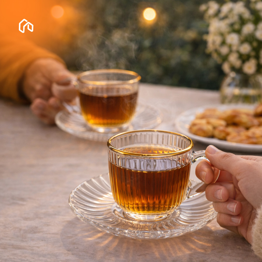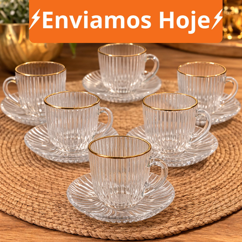 Jogo De Xicara De Luxo Vidro Com Borda Dourada + Pires Linha Hauskraft Premium 85ml